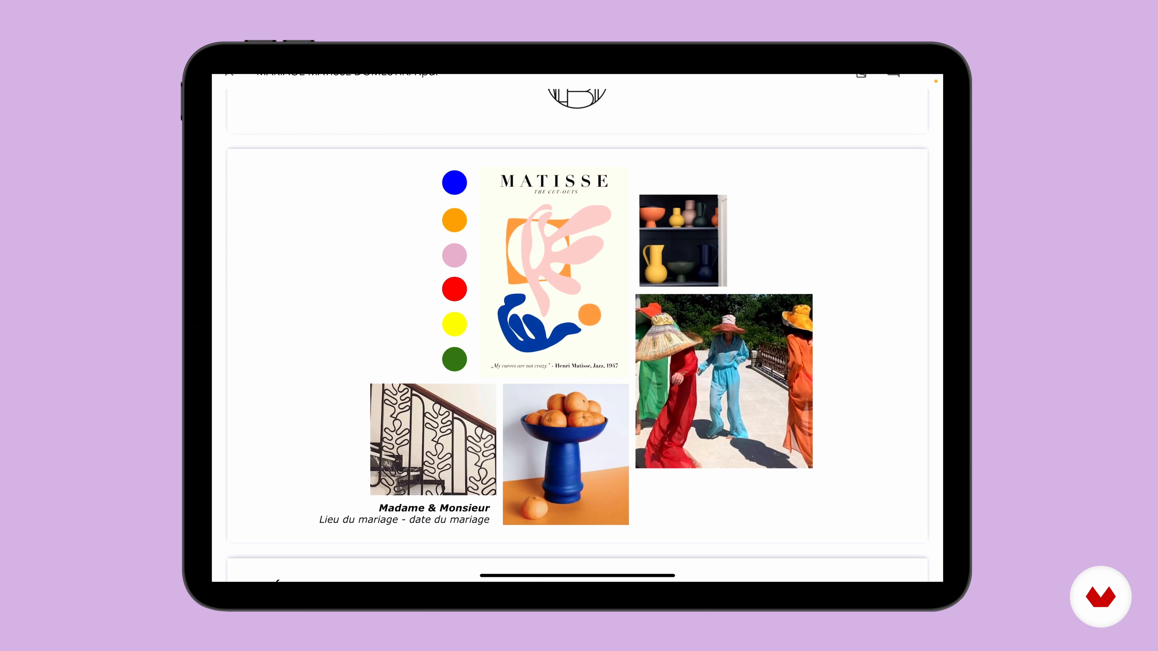 “Bu derste. fikirlerinizi ve isteklerinizi iyi yapılandırmak için bir mood board'un önemini ele Mood board. projemize yön ve şekil vermemizi sağlayacak bir başlangıç noktasıdır. bu nedenle çok önemlidir. Bu. hikayemizin anlatısını inşa etmemize yardımcı olur. Bu. müşterileri veya kendimizi görsel olarak yönlendirmemize yardımcı olur. Tema nedir ve hangi renkler seçilecek. ilk iki sorumuzdur. Örneğin? Projemizin temasının siyah olduğunu söylesem. tam olarak hangi görsel referansların aklınıza geleceğini bilemeyebilirsiniz. Ama size temanın ressam Soulages'in siyah monokromu olduğunu söylersem...”