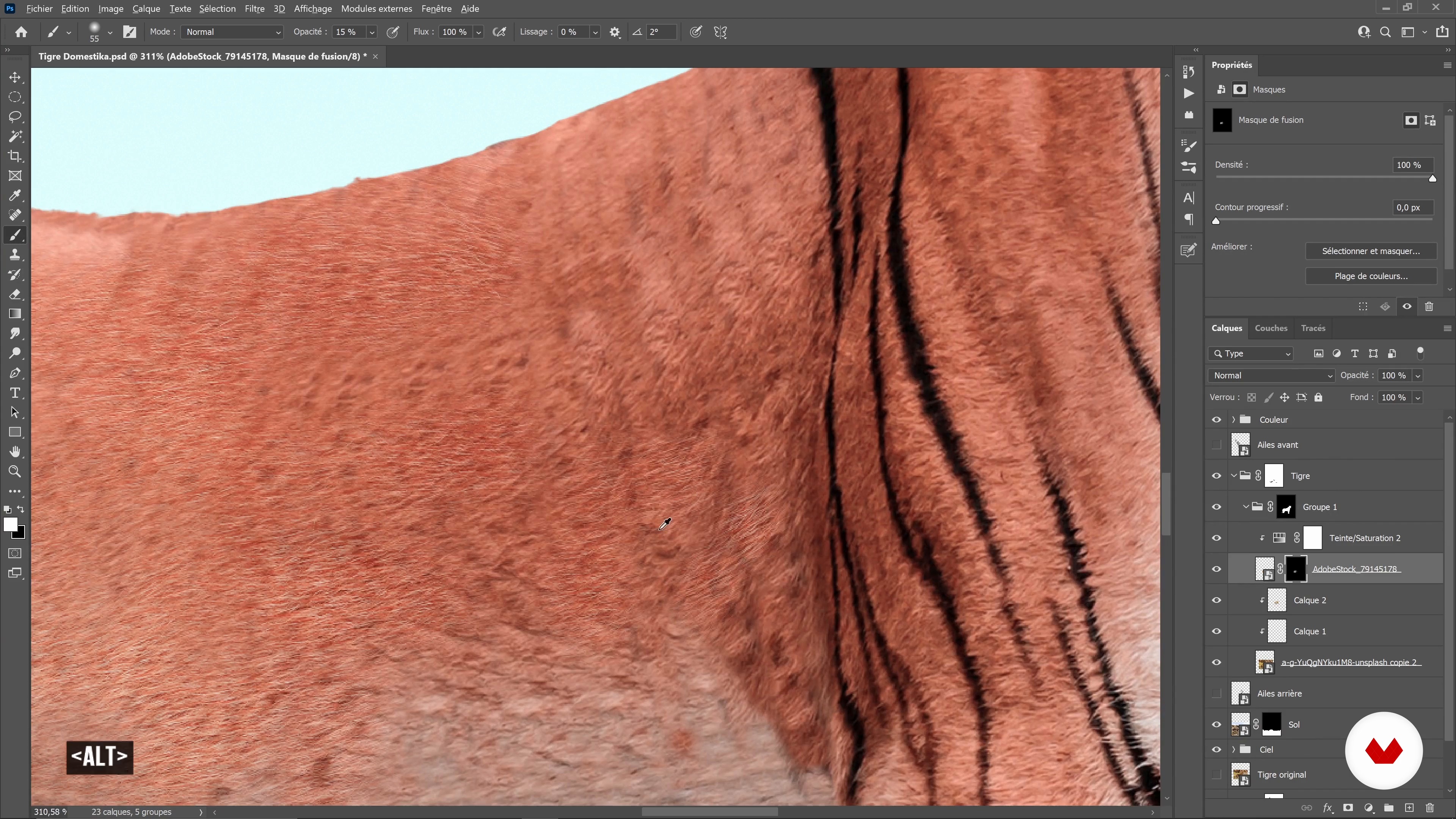 “Öncelikle size kaplanın kürkündeki orijinal şeritlerin nasıl silineceğini göstereceğim. Bu adım kusurlar bırakıyor ve bu nedenle bunu düzeltmek için bir doku ekleyeceğim.”