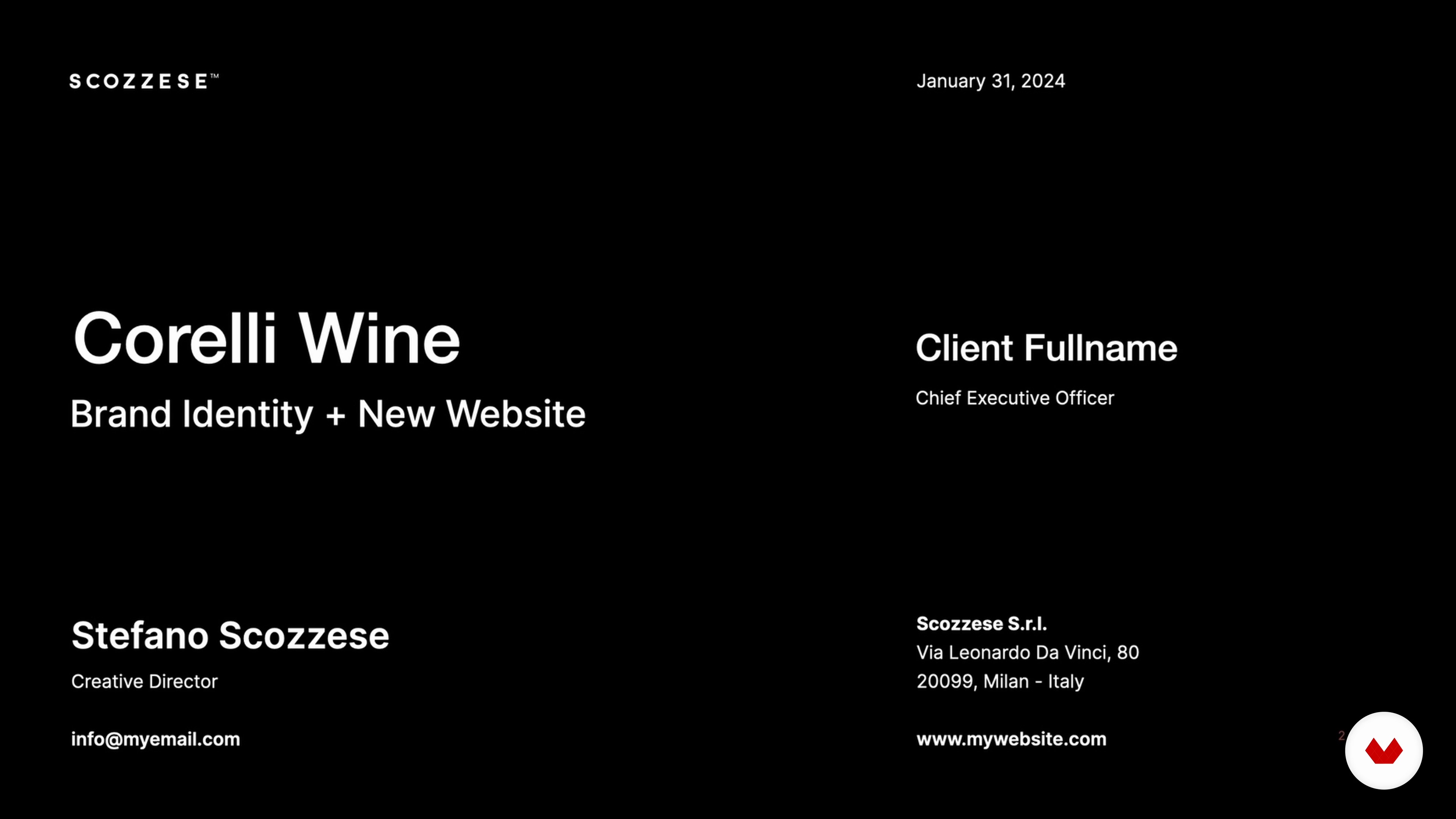 “Müşteri ile yapılan anlaşma Bu dersimizde tüm noktaları birleştireceğiz ve mükemmel teklifimizi oluşturacağız. Anlaşmayla, açılışla başlayalım. Müşteri ile yapılan anlaşma tahminimizin açılış aşamasıdır. Gelin buna derinlemesine bakalım. İlk slayt bu durumda kapak sayfasıdır. orta kısımda tüm bilgilere sahibiz Müşterimiz ve projesiyle ilgili. Bu durumda Corelli Wine'ı icat ettim. şaraphanemiz. Bizden marka kimliği ve yeni bir web sitesi istedi. Ancak alt kısımda tüm kişisel verilerinizi girin, yukarıdaki kısma ise tarihi ekliyoruz. İkinci slayt tahminimizin içerik indeksidir. Gördüğünüz gib...”