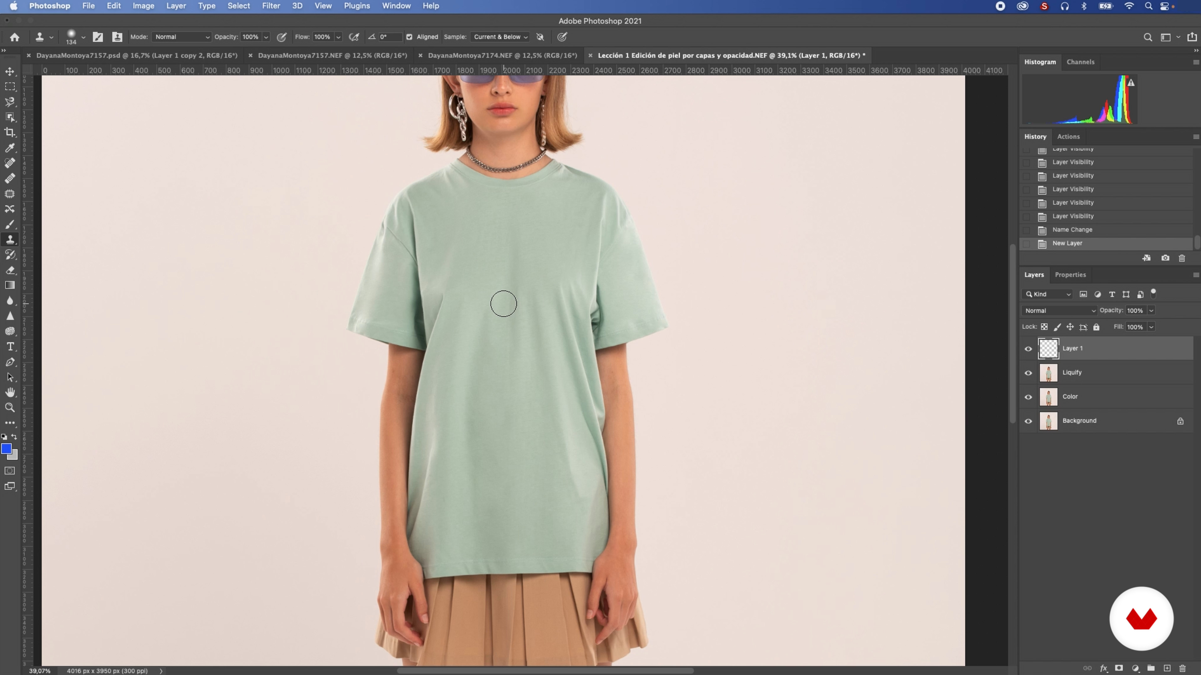 “Bu derste. ticari veya reklam kampanyası fotoğraflarında öne çıkan ürünü nasıl düzelteceğimi tür işlerde. fotoğraflarımızda satmamız istenen ürünün ayrıntılarına öncelik vermek çok önemlidir. Haydi bakalım. Peki. ticari ürünlerimizi. giysilerimizi veya mücevherlerimizi rötuşlamak için bu tişört resmini kullanacağım. Kırışıklıkları ve giysinin şeklini en iyi şekilde göstermek için hızlı bir şekilde nasıl düzeltebileceğimizi göstereceğim. Fark ettiysen. en azından portrelerde. neredeyse tüm düzenlemeleri aynı araçlarla yapabiliriz. Burada kırışıklıkları veya frekans ayırma ile düzenleyebiliri...”