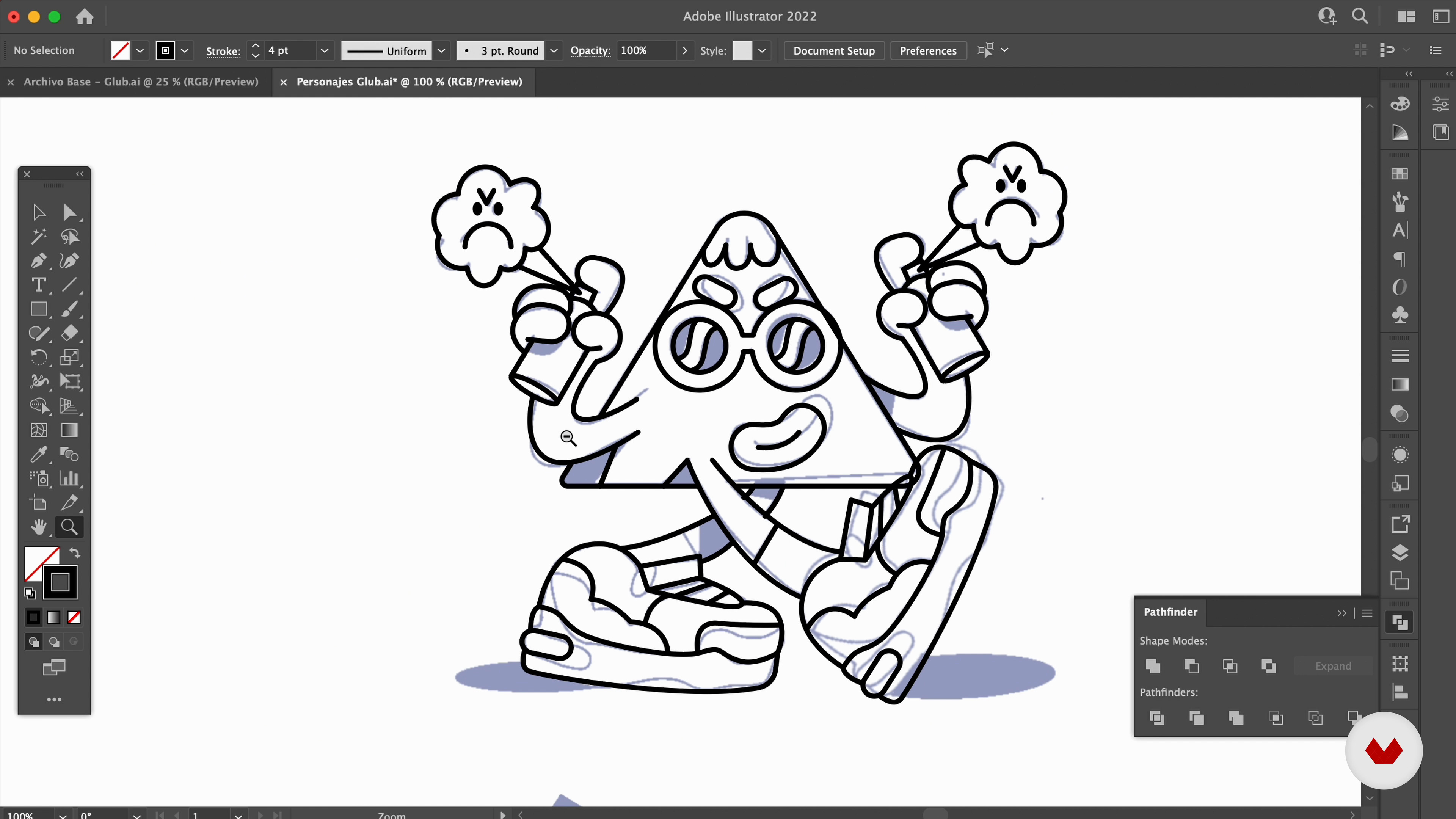 “Bu dersimizde bir önceki derste oluşturduğumuz karakterleri vektörleştireceğiz ve bazı renkler, dokular ve gölgeler ekleyeceğiz. Çizimleri ayrı bir katmana eklemeyi unutmayın. Onu yere koydum. Siyah çizgi ekleyeceğim, Çizginin oldukça sağlam olmasını istiyorum bu yüzden buraya daha yüksek bir değer ekleyeceğim, Başvuru için veriyorum F komutu ve host ile kopyalayıp yapıştırıyorum. Mercek parlamasını atalım ve diğer tarafını yapalım, çift tıklamayla kesebilirim, kalem aracını artı tuşuyla kullanma. Şimdi köşelerinin yuvarlatılmış olup olmadığını kontrol edeceğim, böylece onu burada kullanabi...”