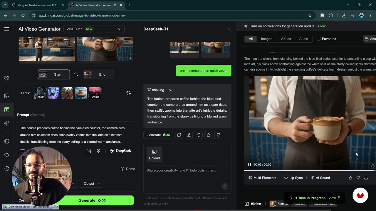 “EyeCandy ve Kling AI kullanarak sinematografiden ilham alan animasyon tekniklerini keşfedeceksiniz. Başlangıç/bitiş kareleri, yakınlaştırmalar, kaydırmalar ve eşleştirme kesmeleriyle geçişler oluşturmayı öğrenerek görsel hikaye anlatımınızı geliştireceksiniz. Nano Banana ve Kling gibi araçları birleştirerek etkileyici, sinematik animasyonlar yaratacaksınız.”