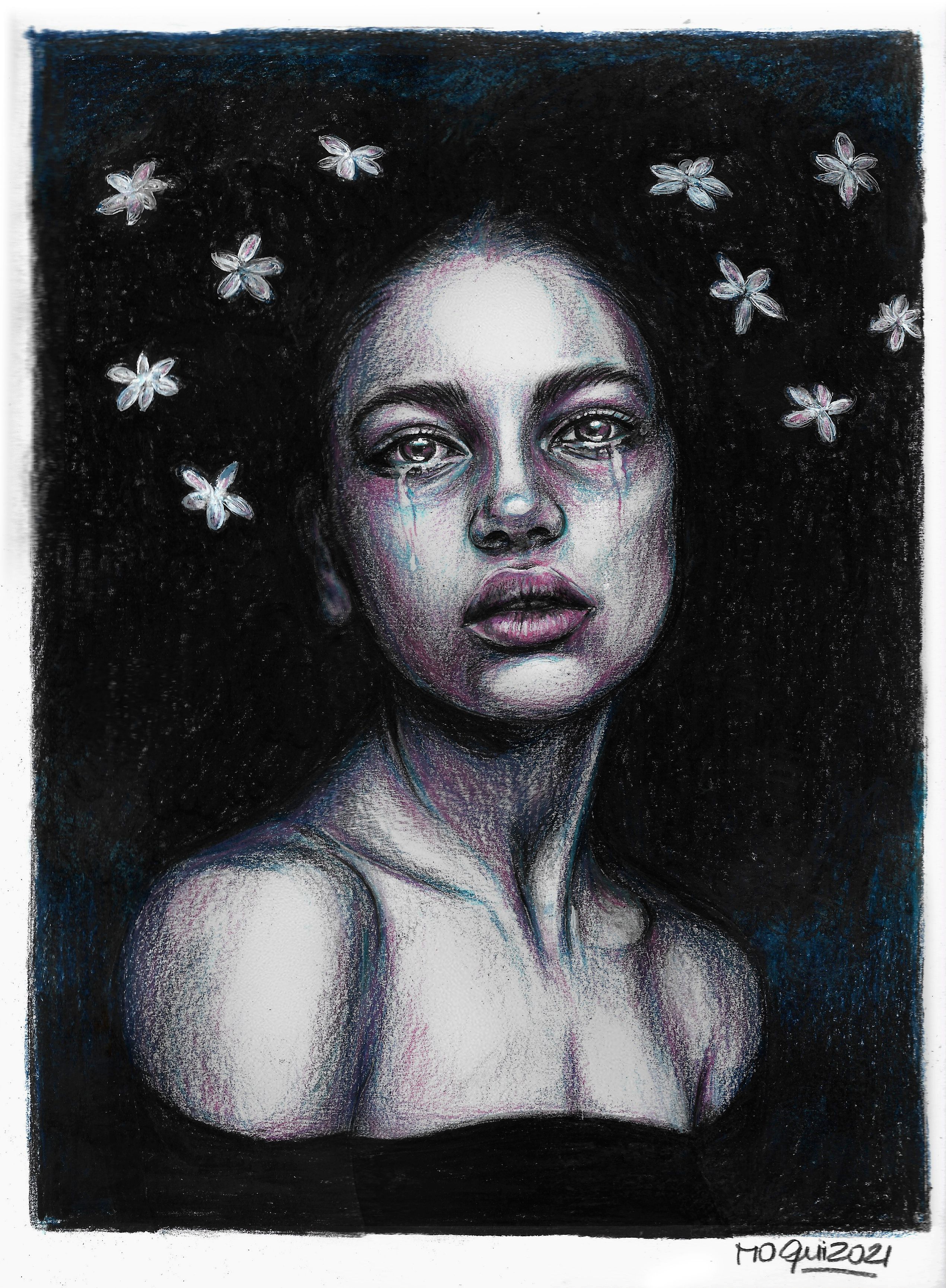 You are masterful with the pencil, those tears of a proud woman crying deeply. Your mastery of the technique is impressive, you set your creations in a splendid way. Guide the viewer's eyes to the hummingbird and to the cry. You convey a clear message without words, pure expression and pure element in your creations. The eyes shine and the skin is smooth and young in your two Works of Art. Keep shining, r.