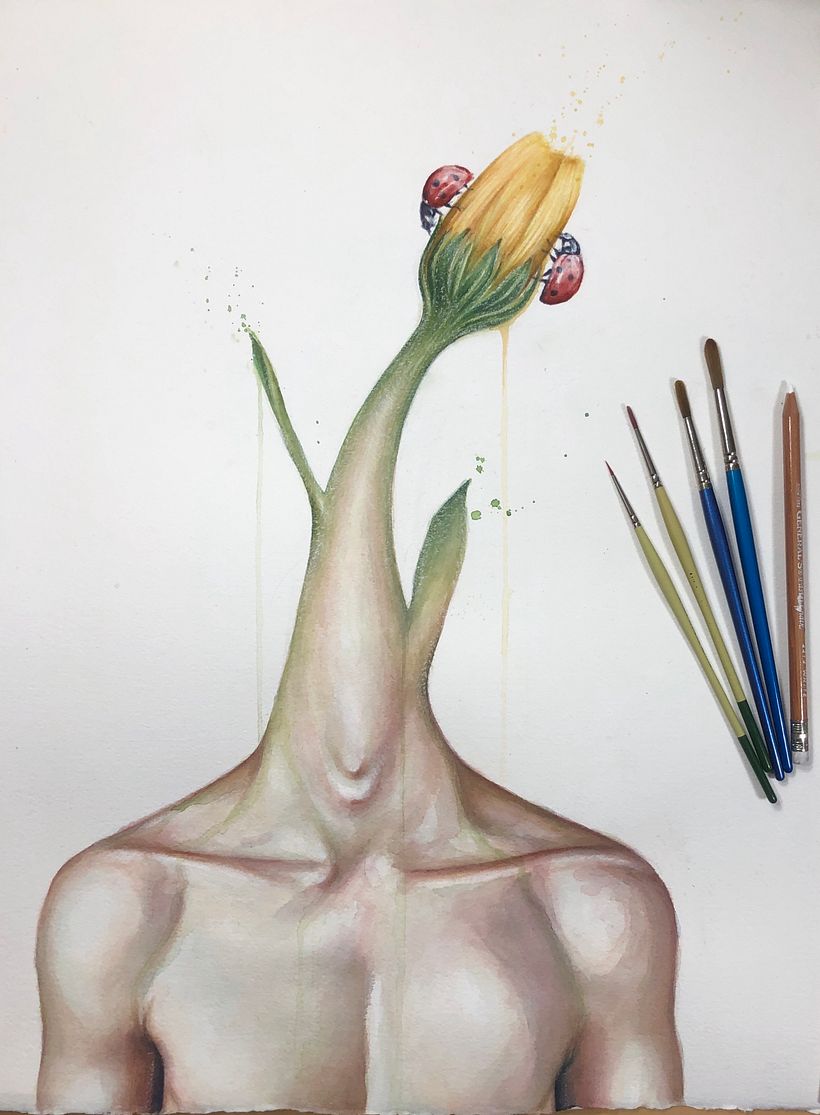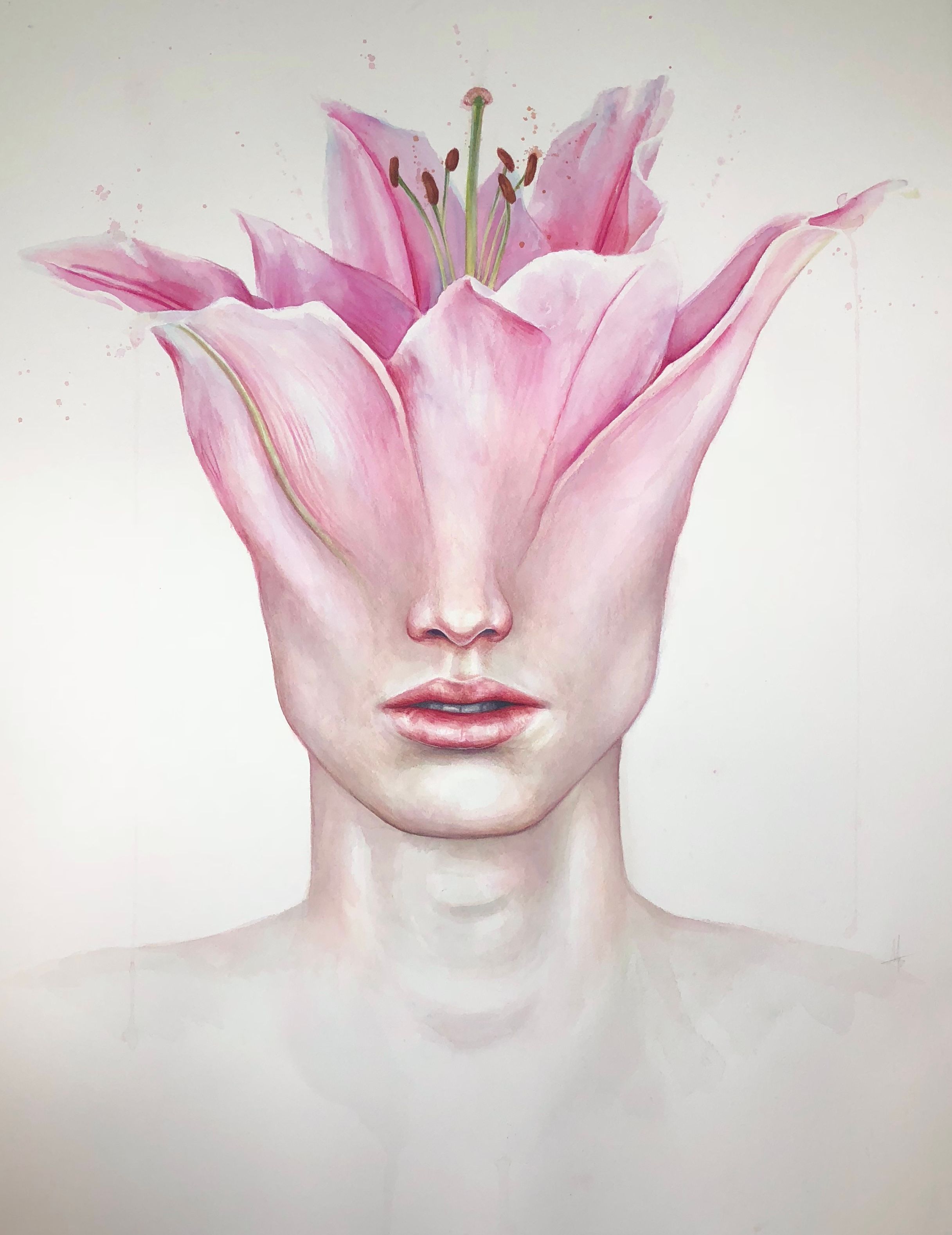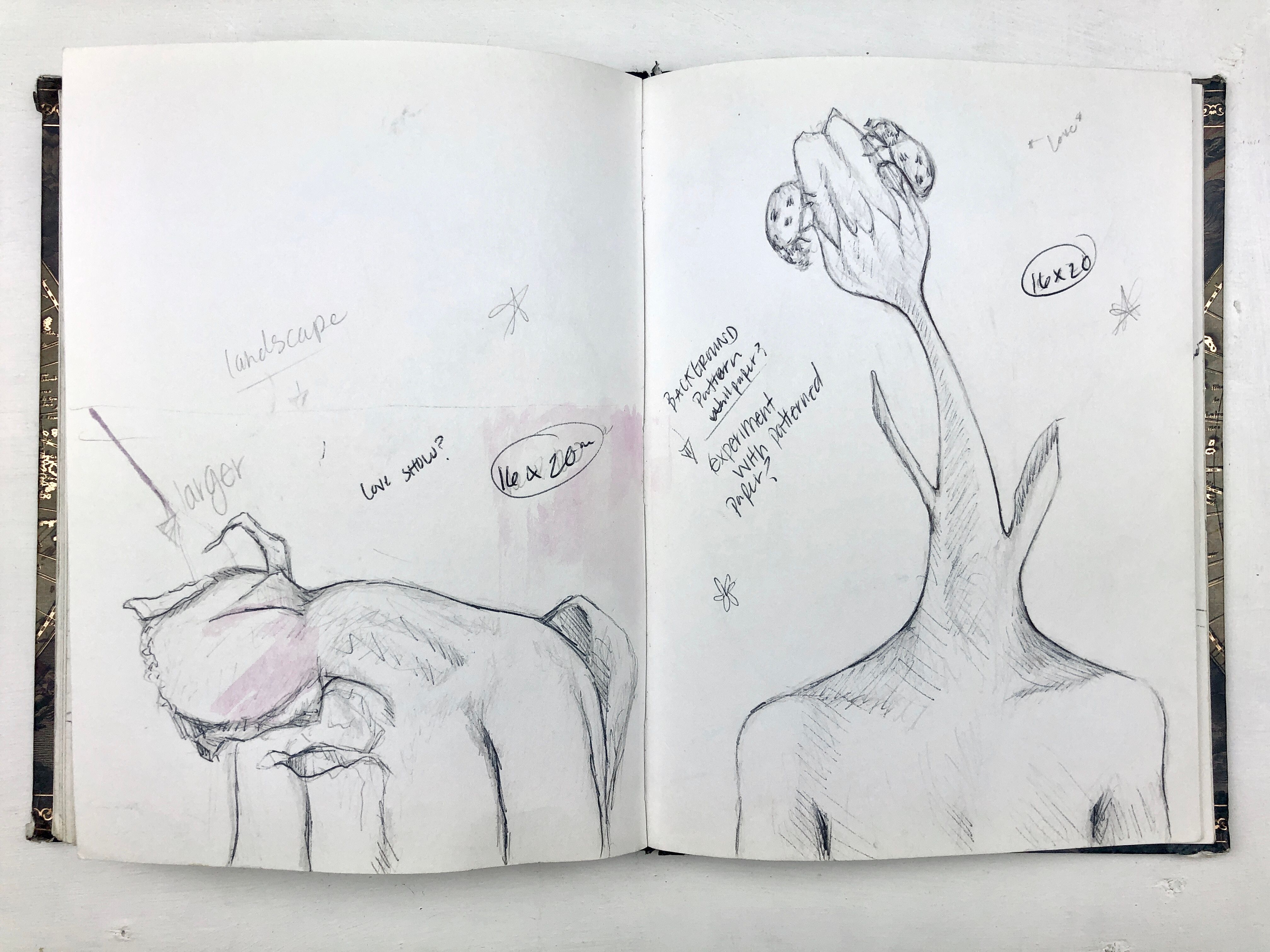 These paintings are inspired by my "flower head" sketches done in my sketchbook on a series about flowers and identity.