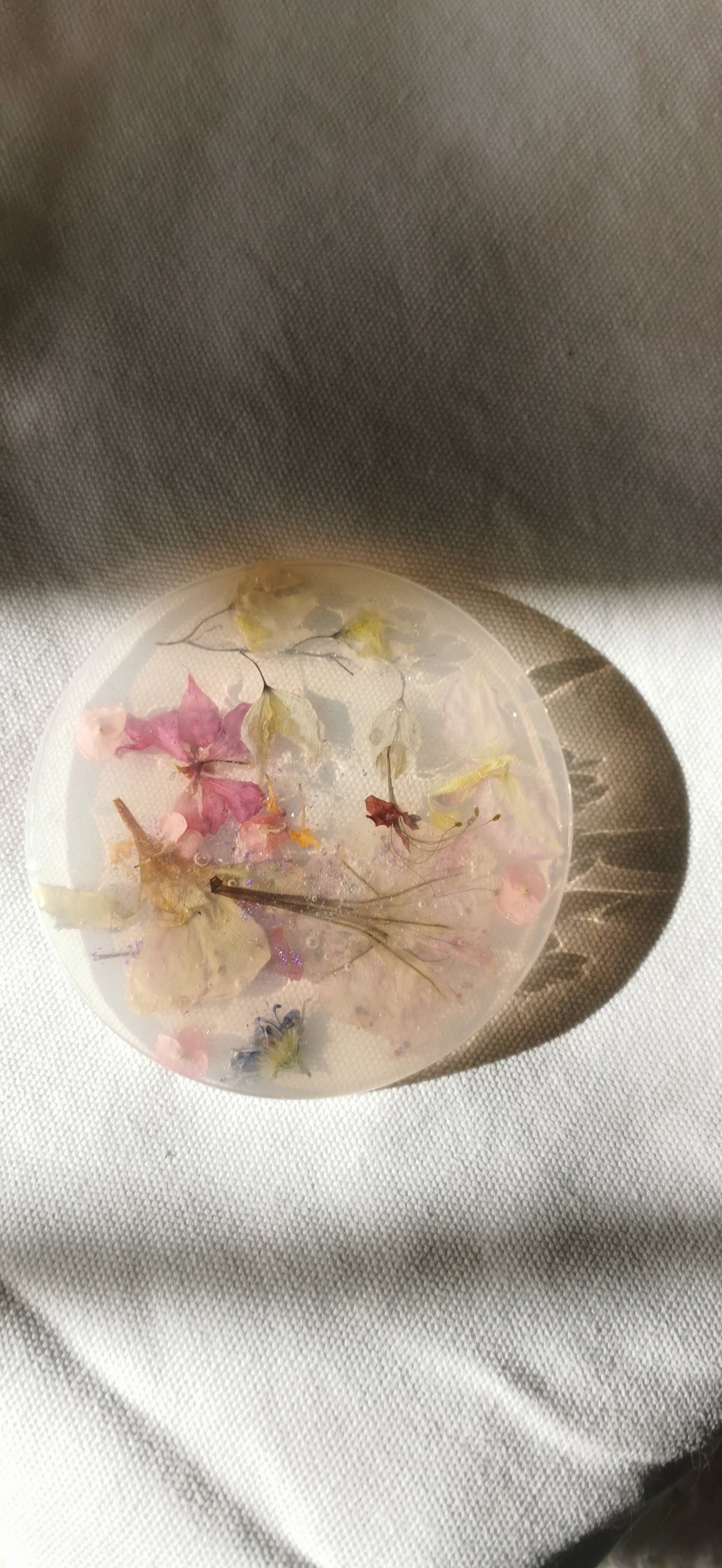 Here is my first (and the last successful) batch of resins that made me very motivated to move forward with the resin work. Since the pandemic started, I haven't been able to find the right kind of resin and therefore my current pieces are all cloudy and a little sticky. I am trying to figure out the reasons for this but I definitely cannot eliminate the possibility of using expired resins and the humidity. Anyway, I hope to make resin pieces as shiny and beautiful as these ones, soon!