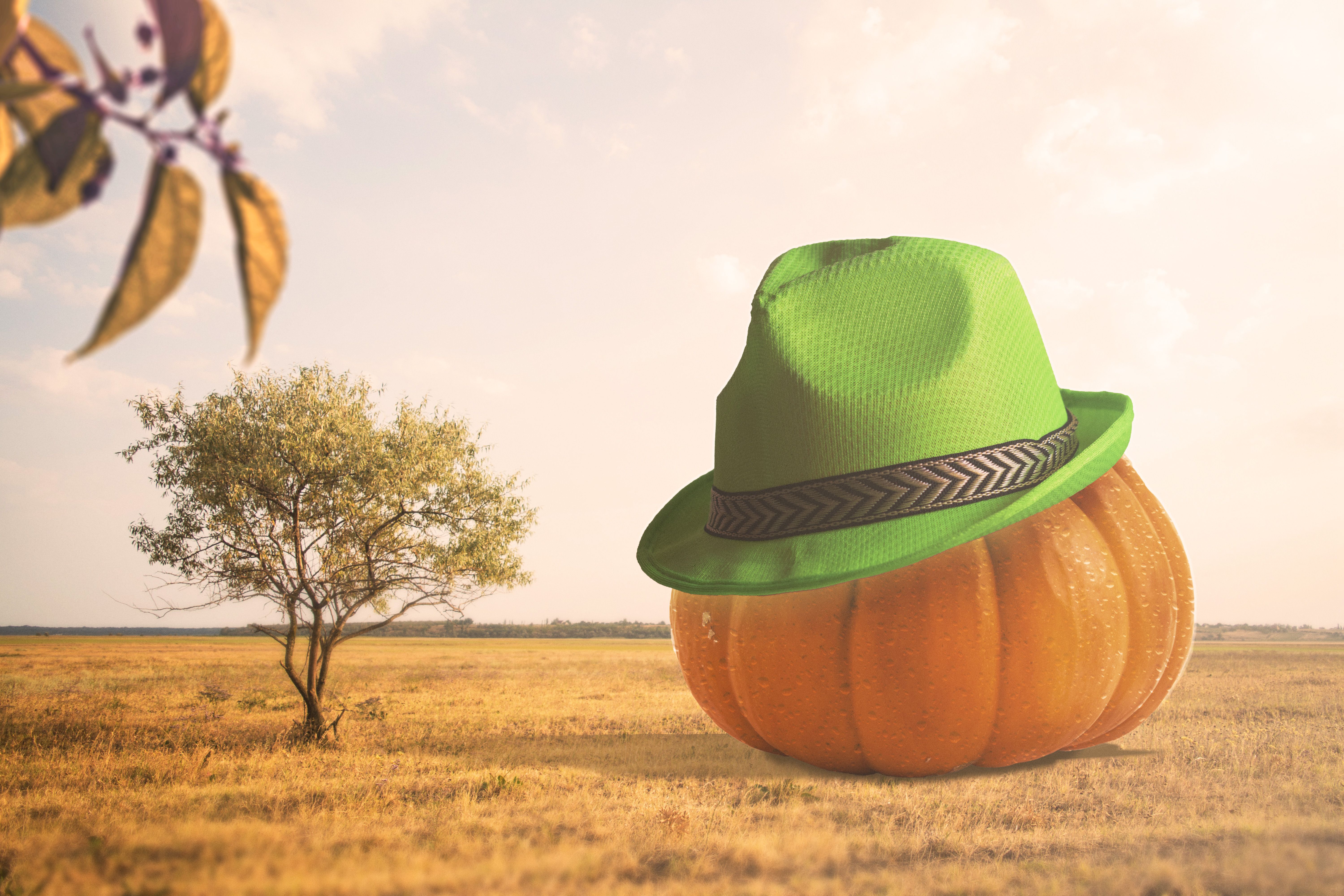 It's quite good, I congratulate you! Pay attention to the contrast levels of the shadows, especially the contact shadows of the pumpkin with the ground and that of the hat with the pumpkin.