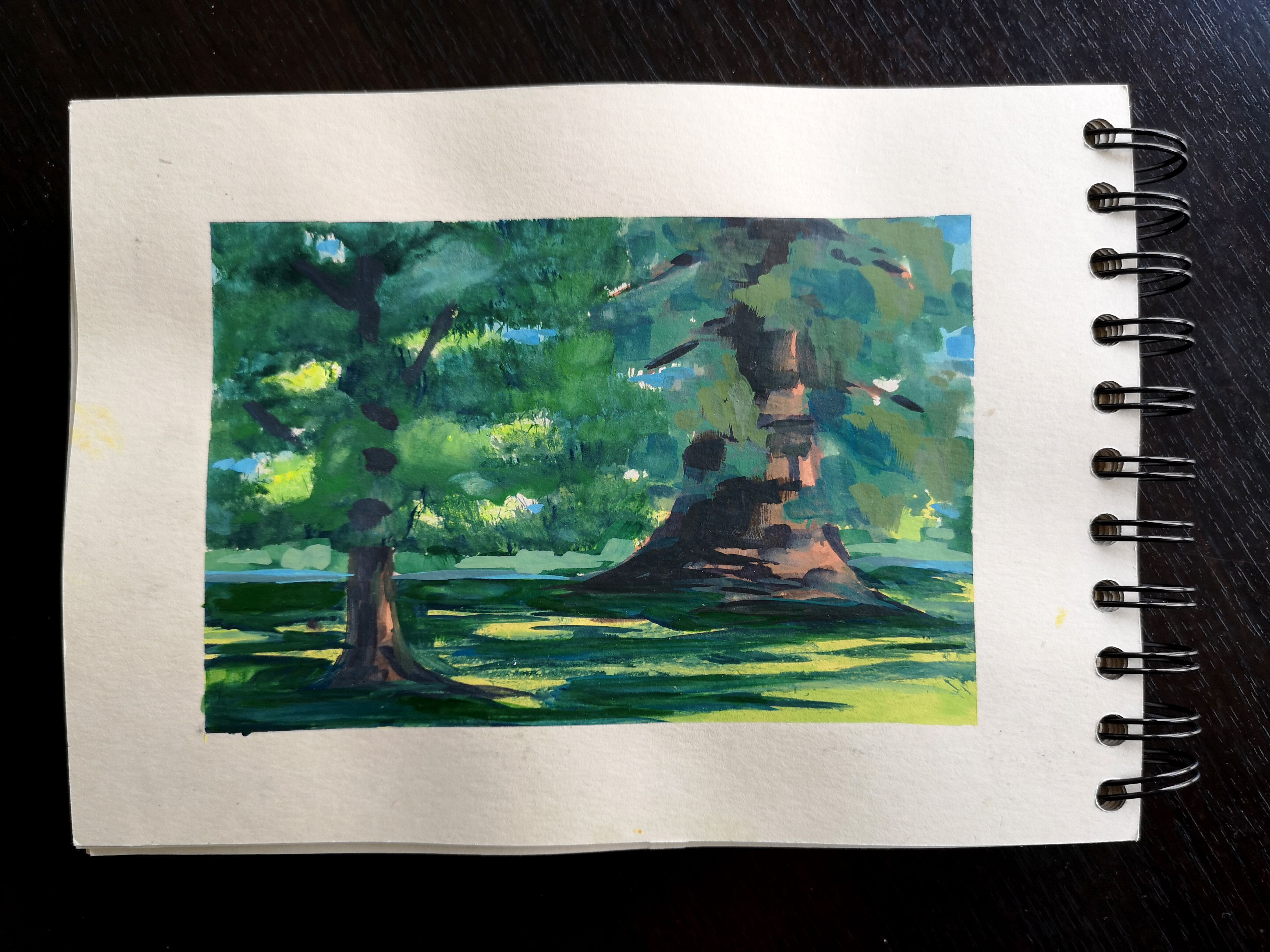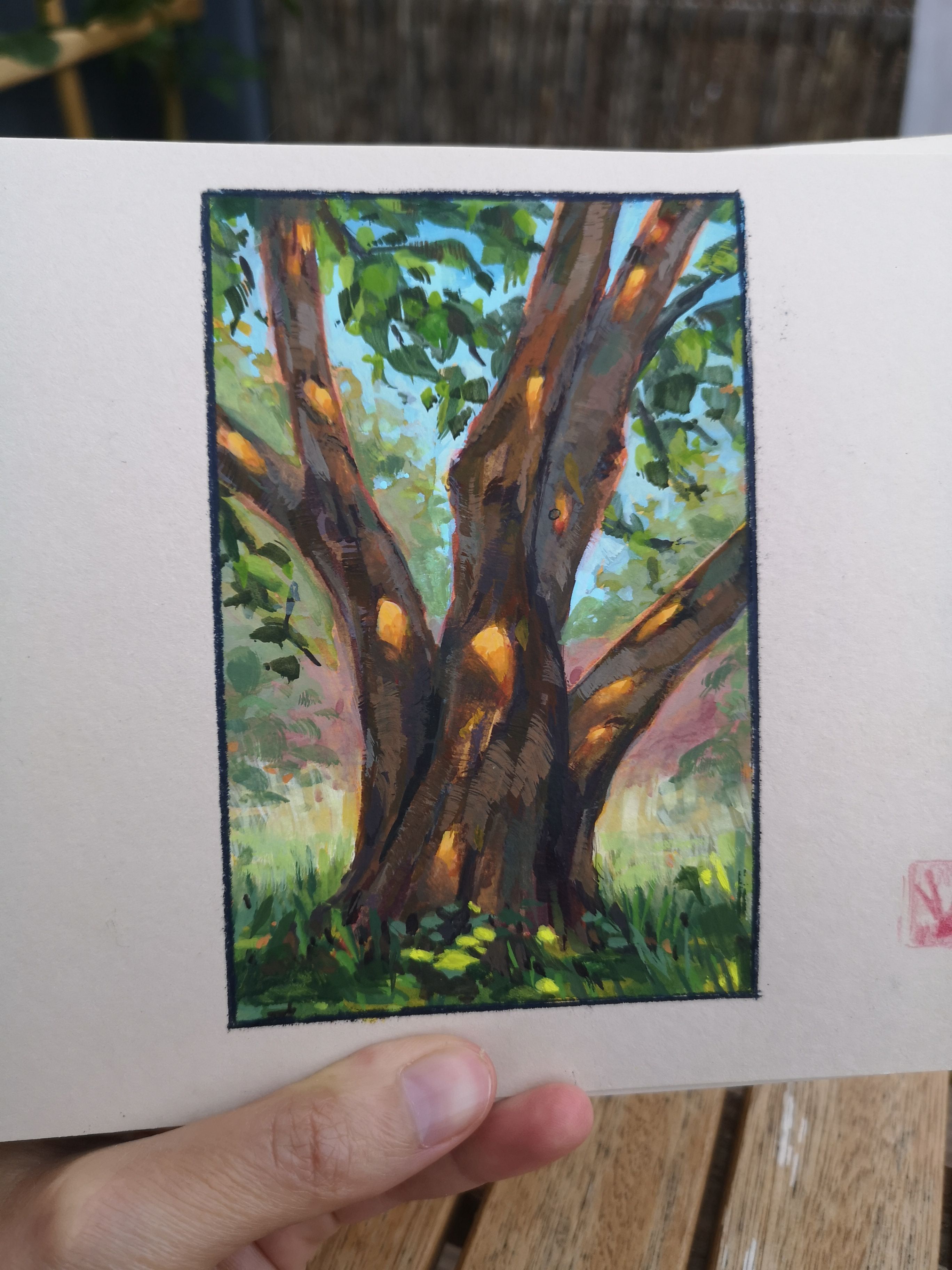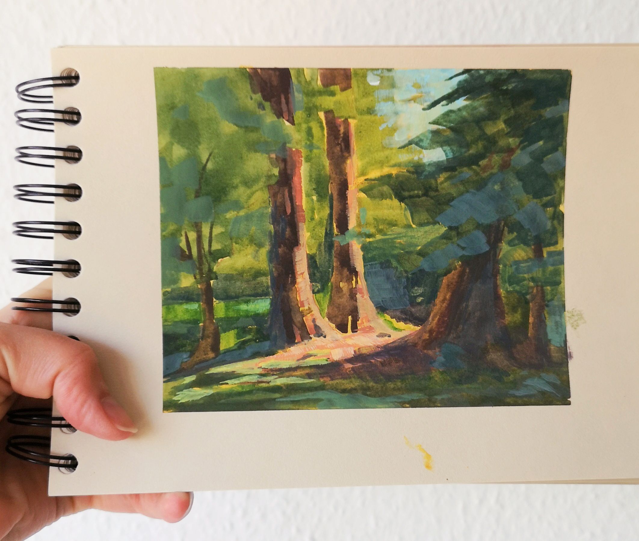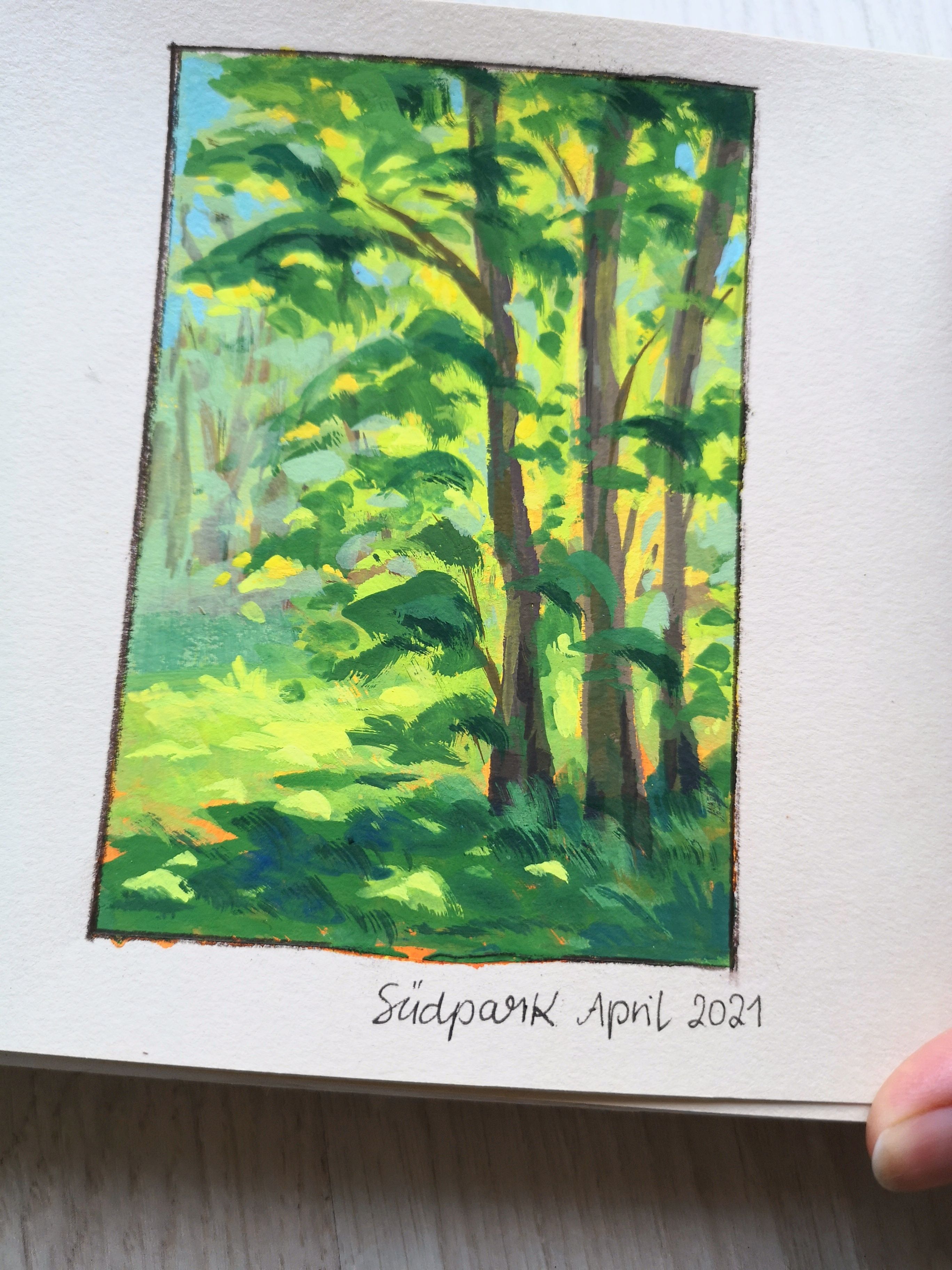In my freetime (and when the weather is warm enough...) I really enjoy going outside and paint in nature. I use a mixture of aquarell and gouache colors and paint whatever motif I stumble upon.