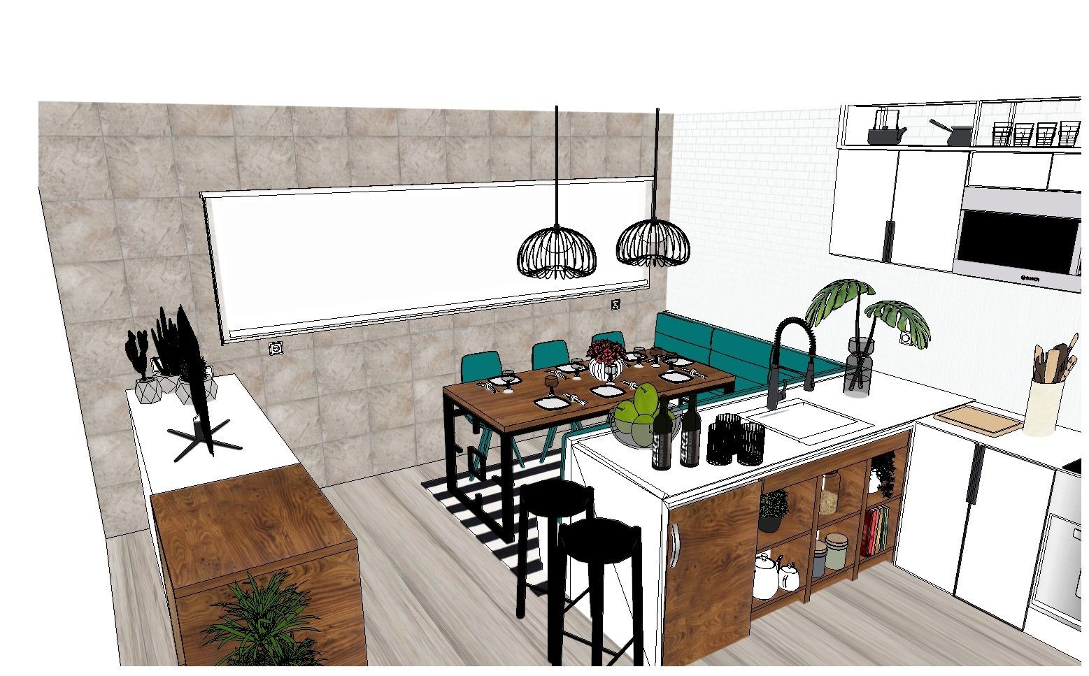 I sense that the project you are presenting tries to renovate the kitchen with a generous space for lunches and meals.