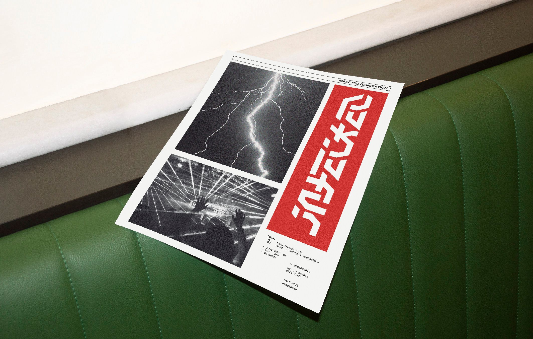 Se quería generar más que solo una tipografía; buscamos que el logotipo sea de por sí un símbolo. Que no necesite ser entendido obligatoriamente sino por el público afín a la marca, pues puede parecer que está compuesto por letras ilegibles o por un alfabeto en un idioma distinto. El punto era que se sienta la fuerza y energía natural de esta música y su gente. Para la línea gráfica queríamos jugar con una estética industrial, pero transmitiendo siempre la energía que vive en la naturaleza y vibra con nosotros, de igual forma que lo hace la fuerza de la música de la cultura rave.