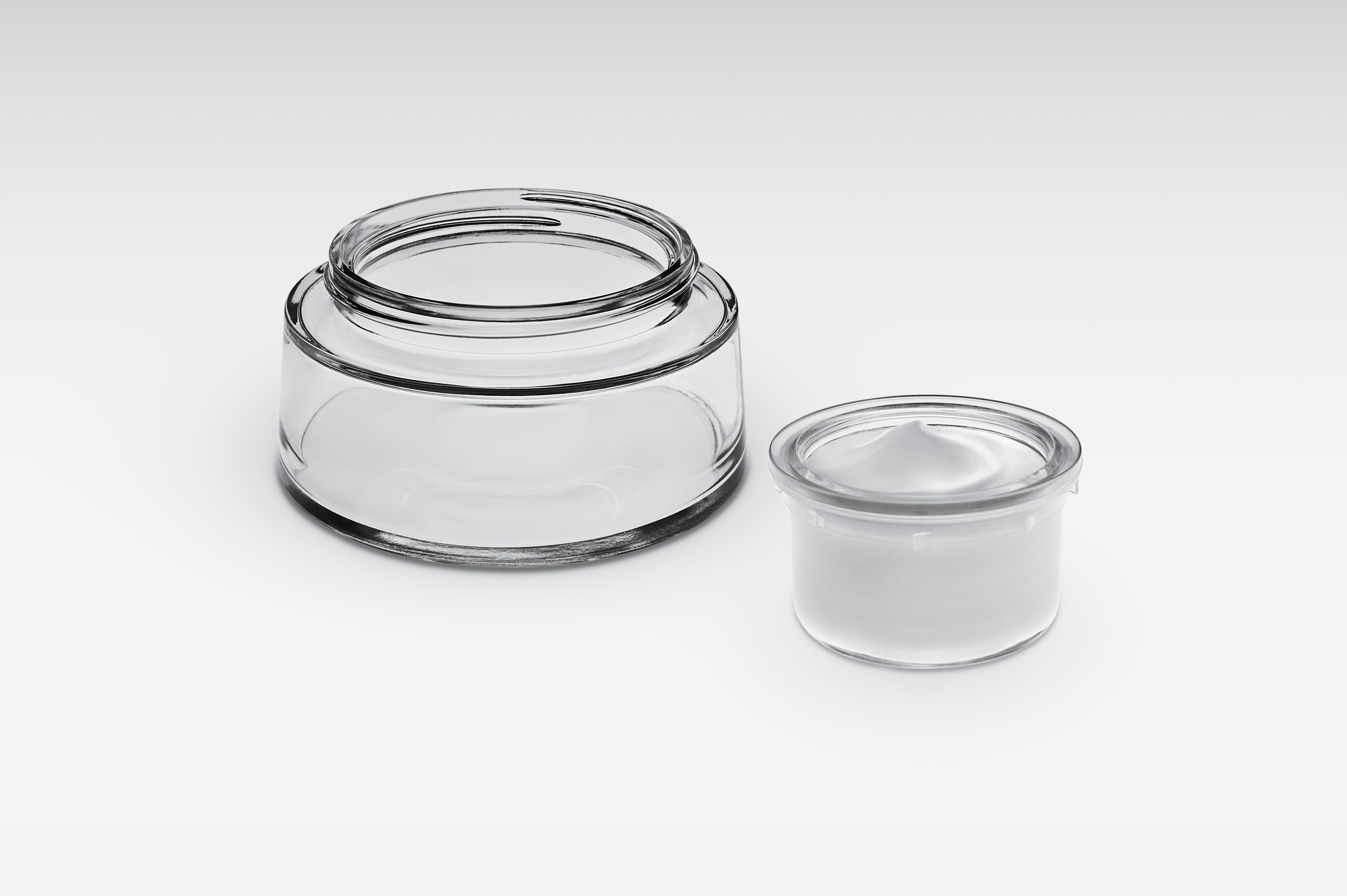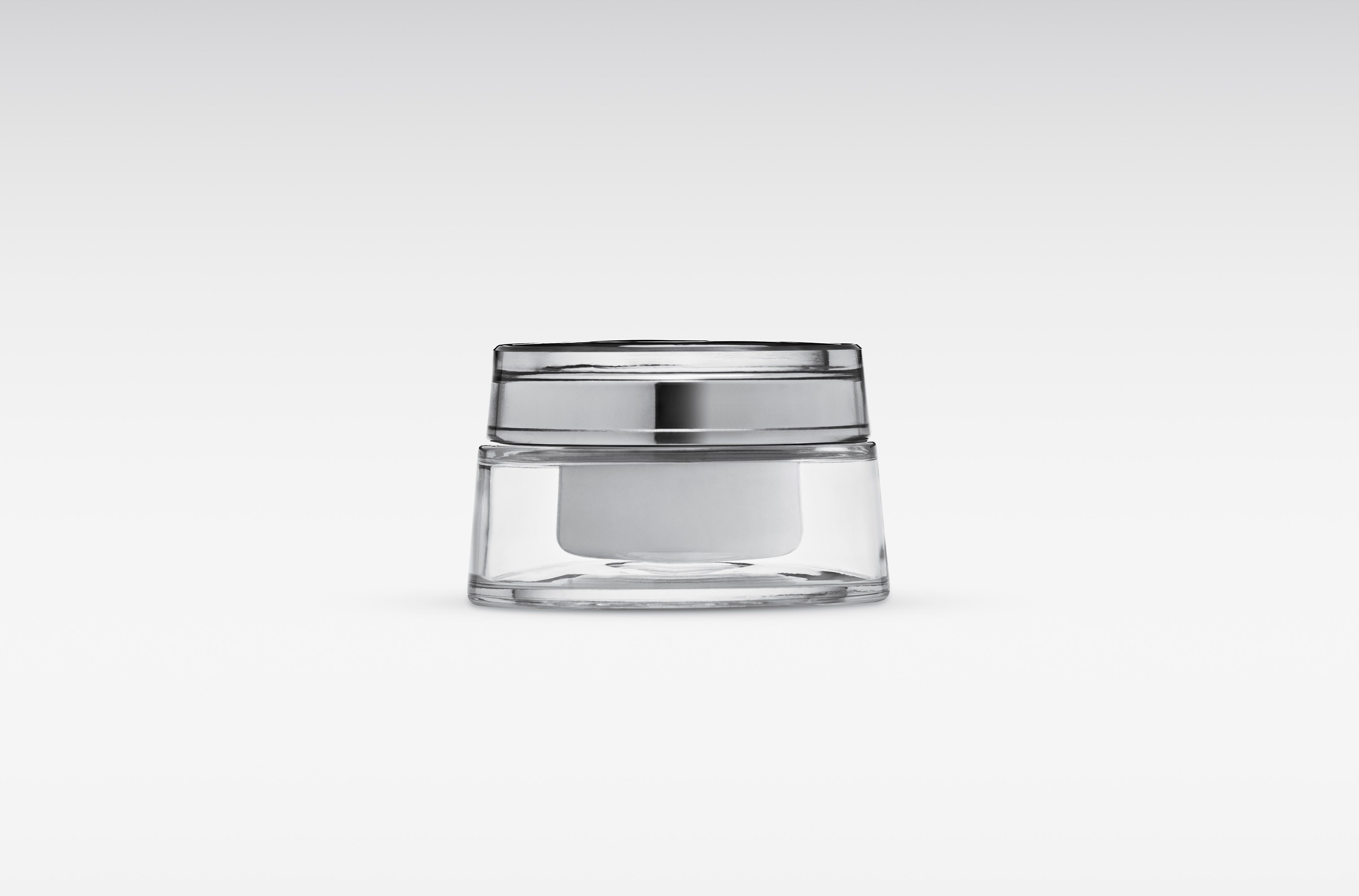The Rechargeable Bormioli, a glass jar to skincare with a removable, refillable, 50ml glass cup.