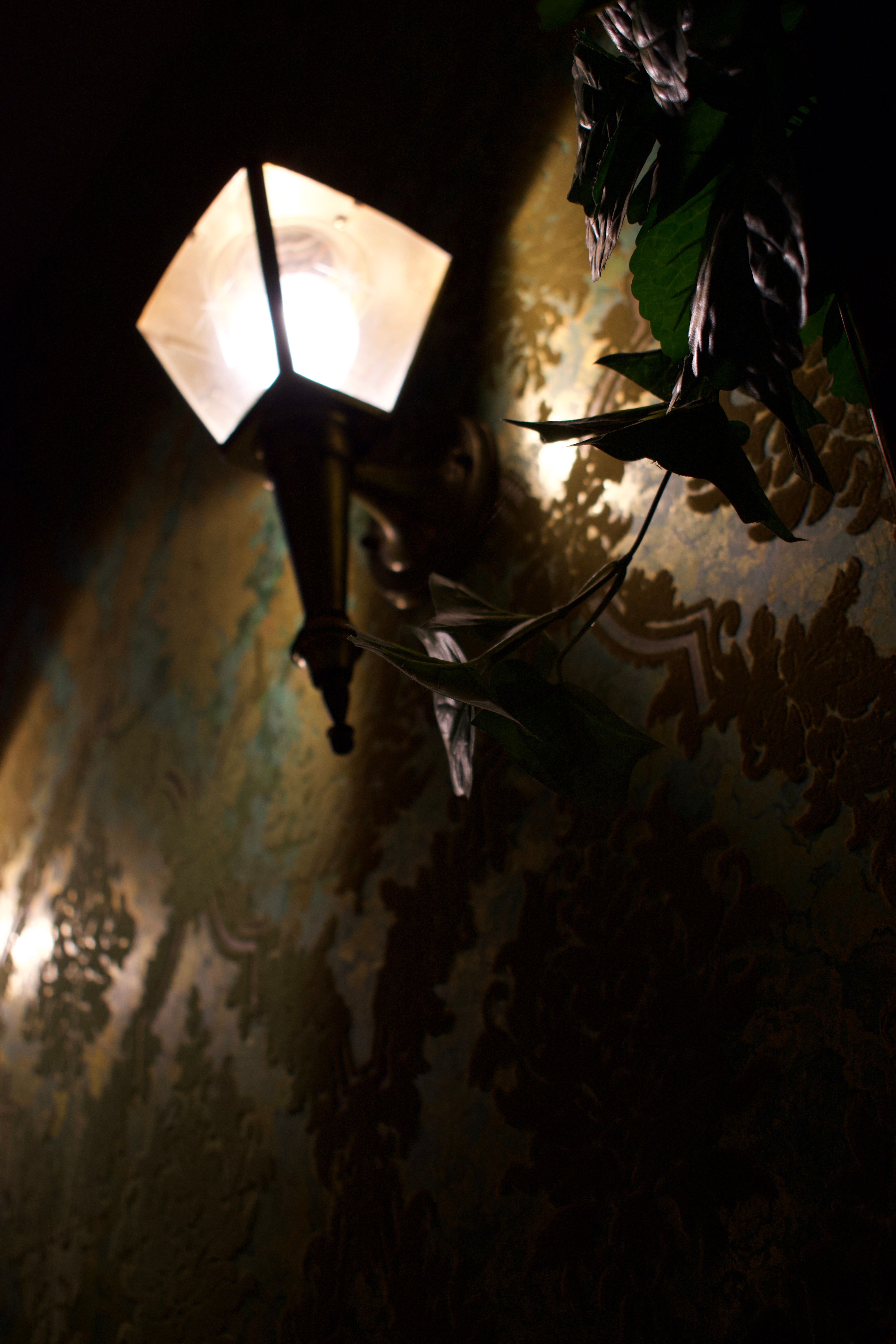 2. Ese es uno de los dos farolitos que alumbran el baño y como son prácticamente la única fuente de luz, lograr la exposición que quería para las fotos fue todo un reto en este proyecto. Hablando de la exposición, quería asegurarme de captar la atmósfera oscura y hasta cierto punto lúgubre que es tan propia de ese baño y que a veces incluso me da un poco de miedo. Por eso utilicé una exposición por abajo de la neutral que marca el exposímetro porque me pareció que así el resultado final era mucho más fiel a la realidad de lo que yo observaba y sentía estando ahí. Puse el enfoque en una la planta artificial llena de polvo porque me gustó como enmarcaba al farol y porque es una de las cosas que nunca he entendido qué hace ahí pero que contribuye a darle al baño su carácter bizarro.