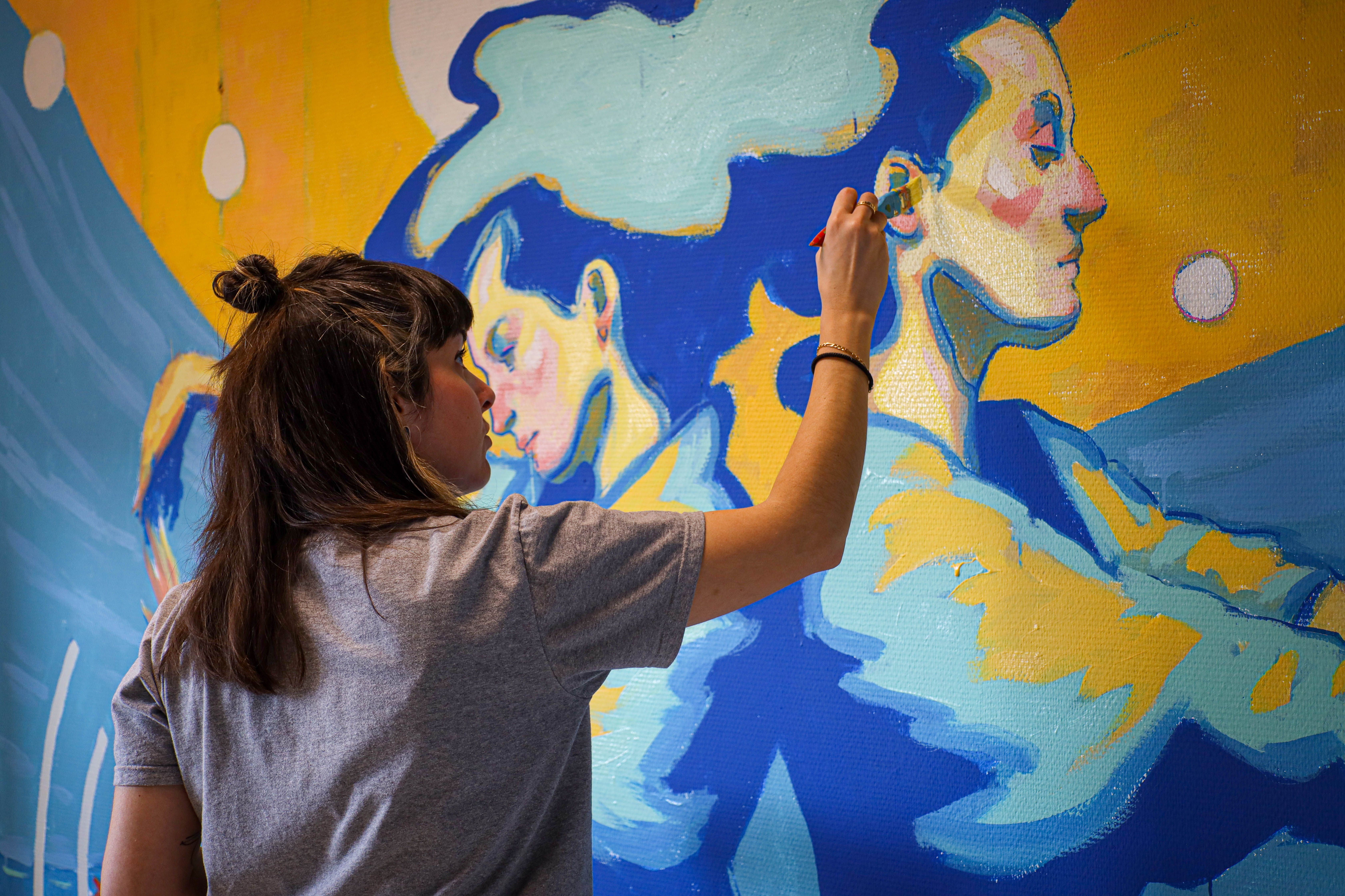 Posiblemente este es uno de los proyectos más bonitos en los que me he visto inmersa: pintar un mural en un hospital, dentro de una planta terminal. Tenía un gran objetivo y era conseguir que la gente que entrara en esa sala consiguiera sentirse acogido y reconfortado para ayudarle a afrontar la dura situación que estaba viviendo.
