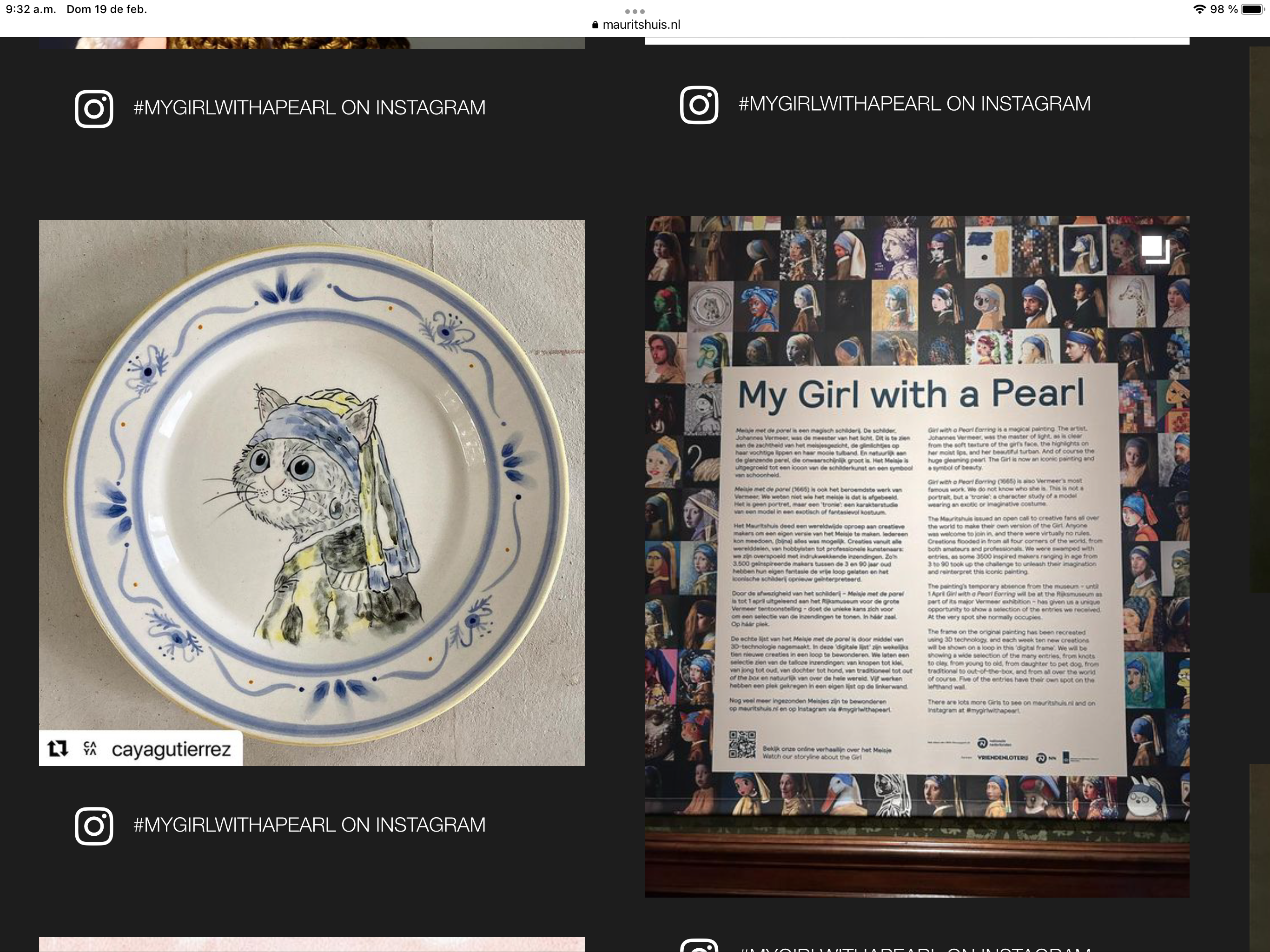 Del 8 al 14 de mayo del 2023, por espacio de una semana, mi pieza cerámica #mygirlwithapearl inspirada en ‘La joven de la perla’ se exhibió en el Vermeer Room del Mauritshuis Museum de La Haya. 🙌🏼