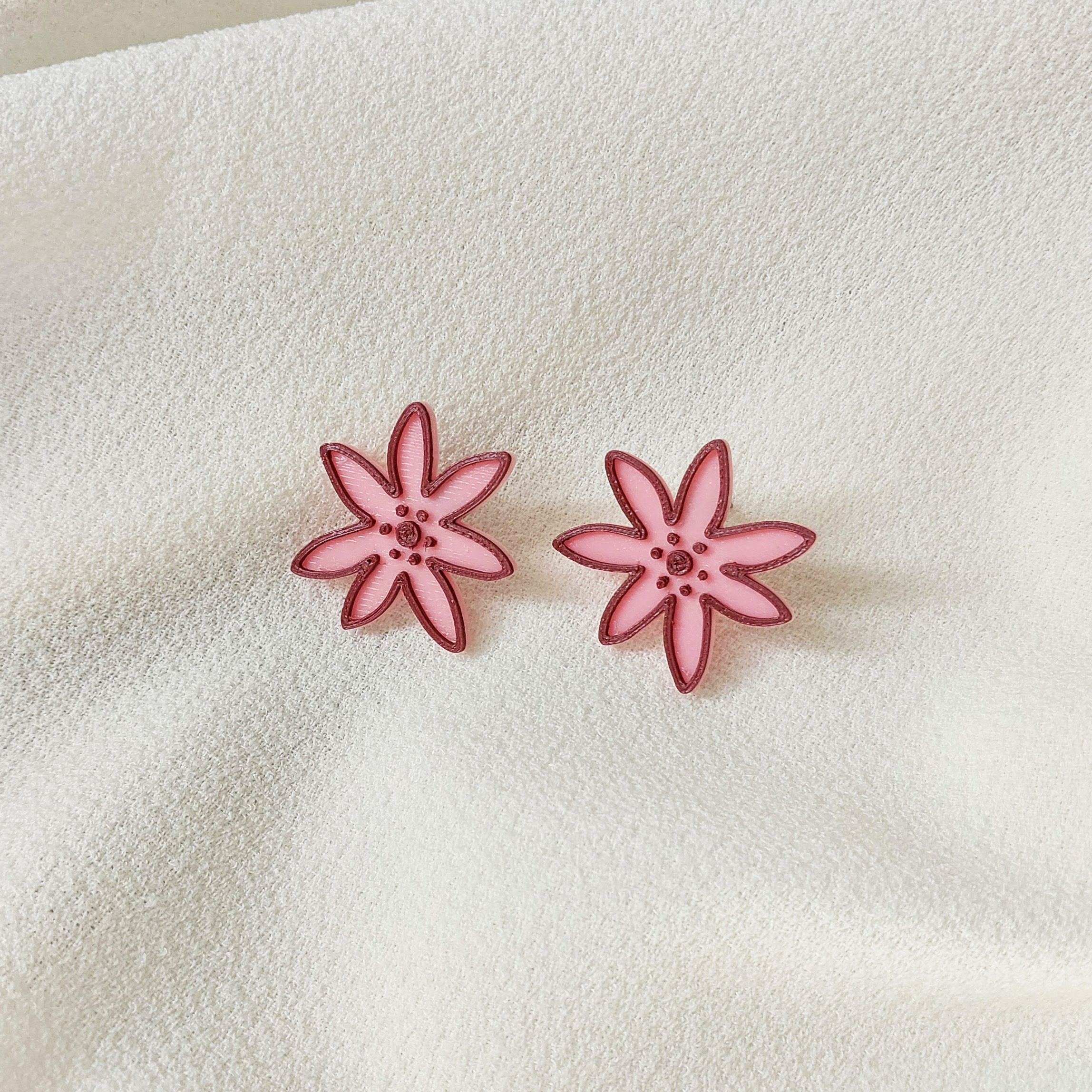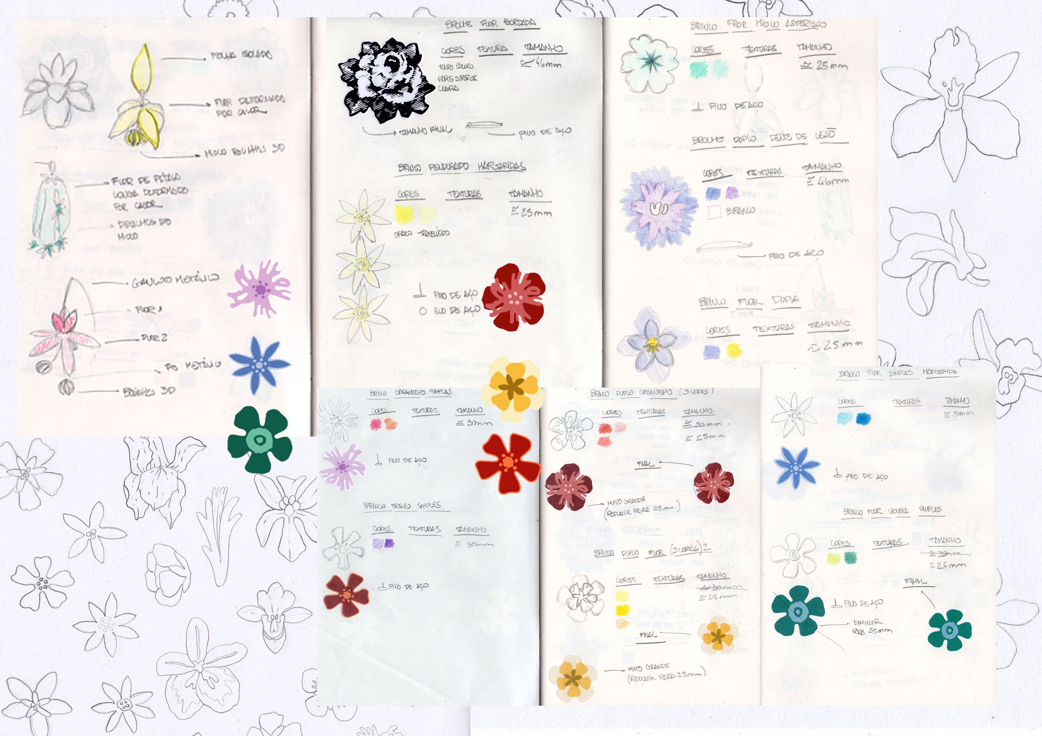 Produzi vários esboços, mas resolvi usar esse mais simples(similar ao ensinado no curso) para seguir o passo a passo e testar a primeira impressão bicolor! Ainda não tenho uma impressora 3D, então tive que contratar o serviço de uma empresa, mas gostei muito do resultado! Para a base, escolhi um PLA opaco rosa claro e para os detalhes, um filamento metalizado. Como acabamento, optei por um pino de aço, o que evita alergias. Pretendo comprar a minha própria máquina para projetar modelos mais complexos e experimentar diferentes filamentos!