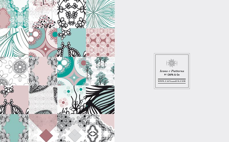 "Icons & Patterns by CAPA & Co" es el nombre de la identidad visual que he creado para mis colecciones de iconos y patrones.