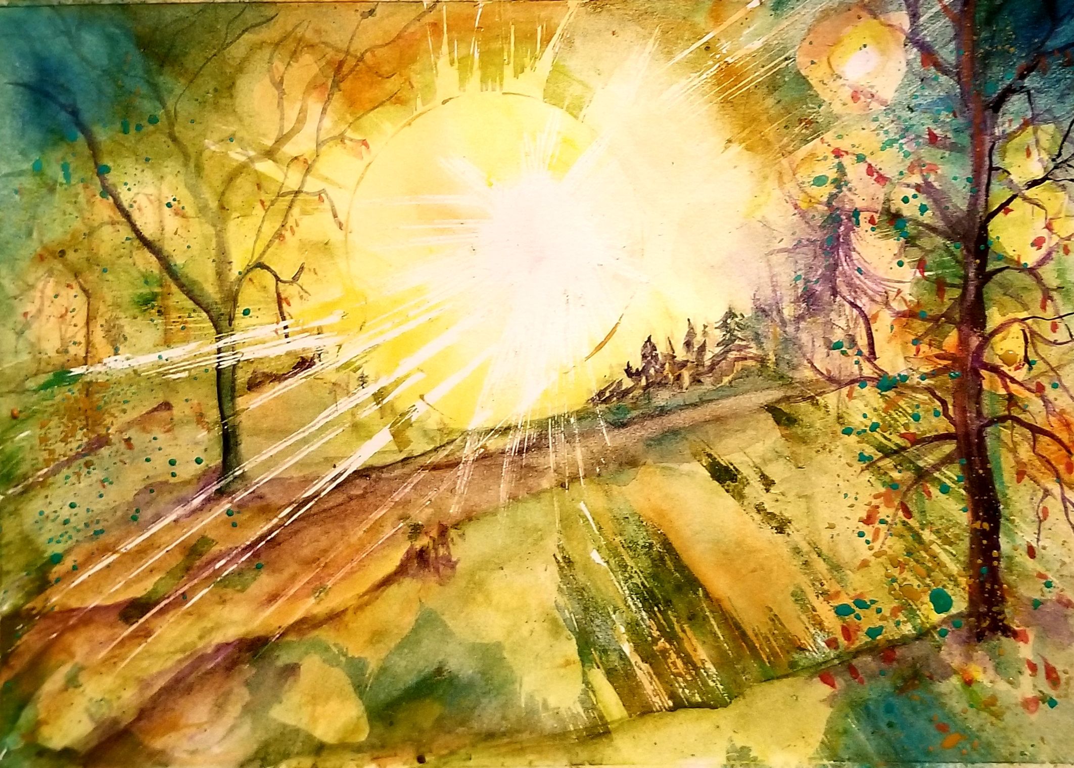 My project for course: Dreamy Watercolor Landscapes: Paint with Light, Sunburst, Artist_ Brenda_ Lewis
