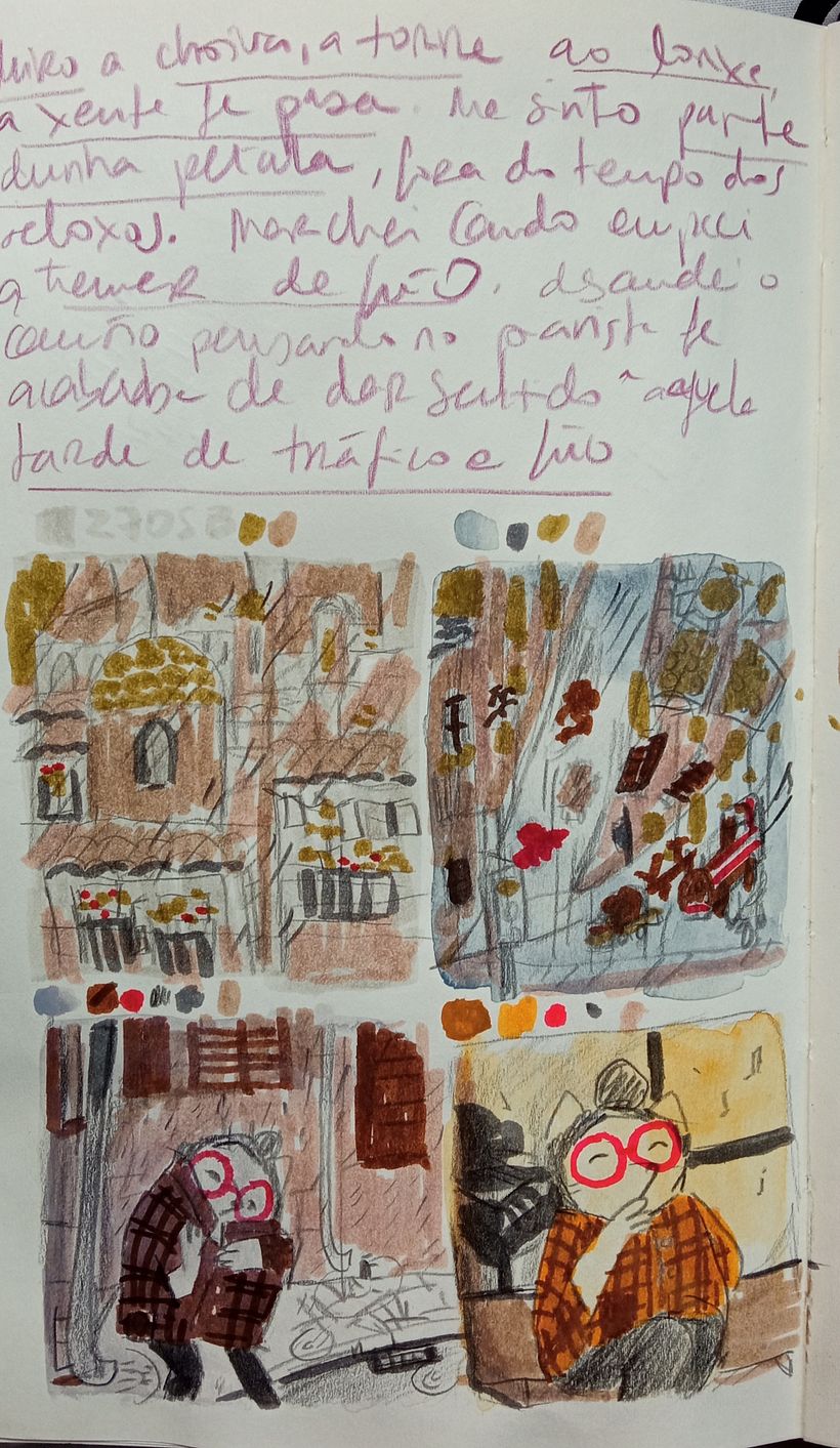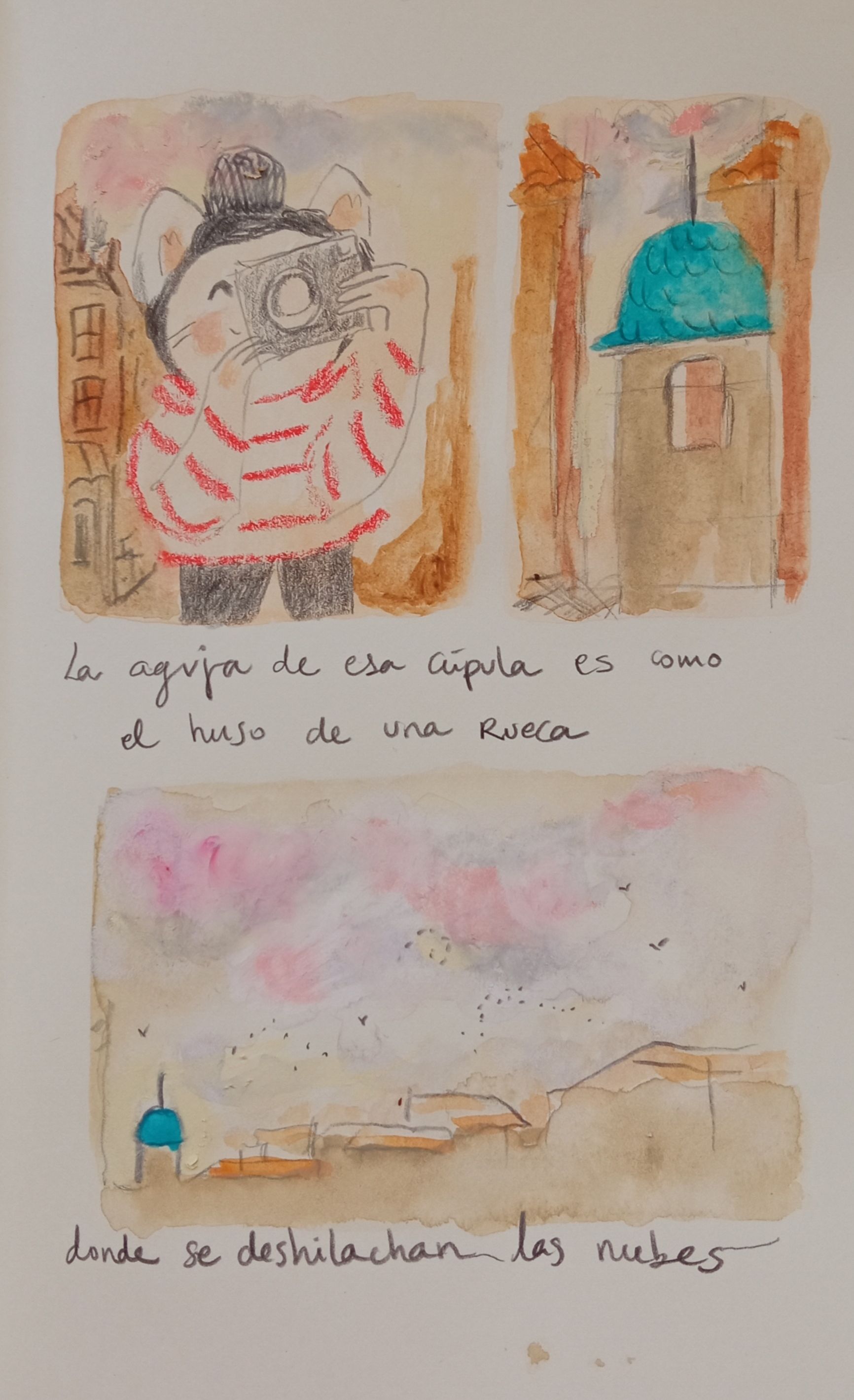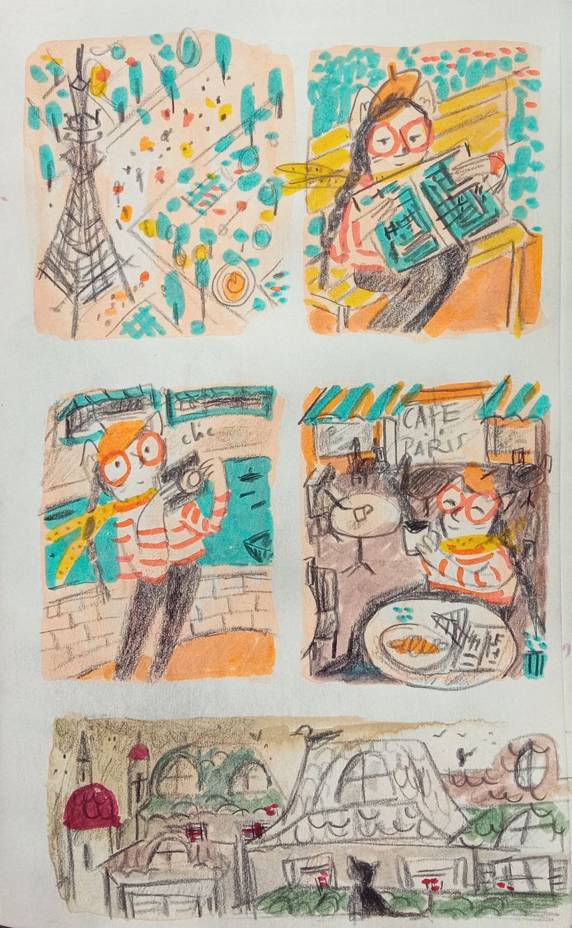 La historieta de mi proyecto final es muy simple porque estoy empezando a practicar la narrativa visual poco a poco, de momento el uso de color es bastante realista pero al menos estoy empezando a saber utilizarlo para crear una atmosfera, un clima,lo que antes no sabía. Me interesa mucho aprender a captar la luz y los ambientes.