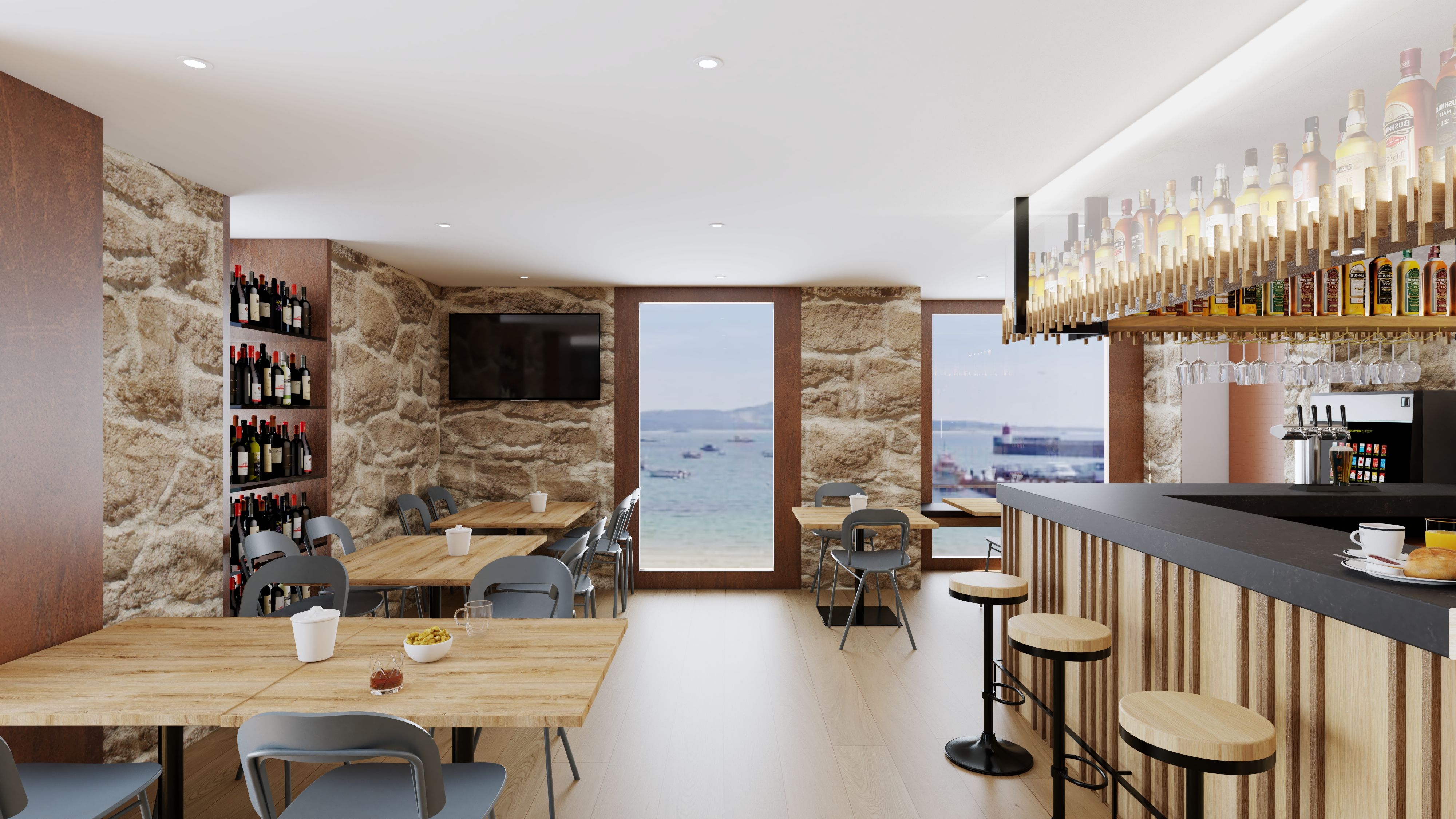 Bar emblemático de Corrubedo. Con un horario continuo desde bien temprano, necesitaban un local versátil, cómodo, con más luz y adaptable al público de los distintos horarios, tanto día como noches.