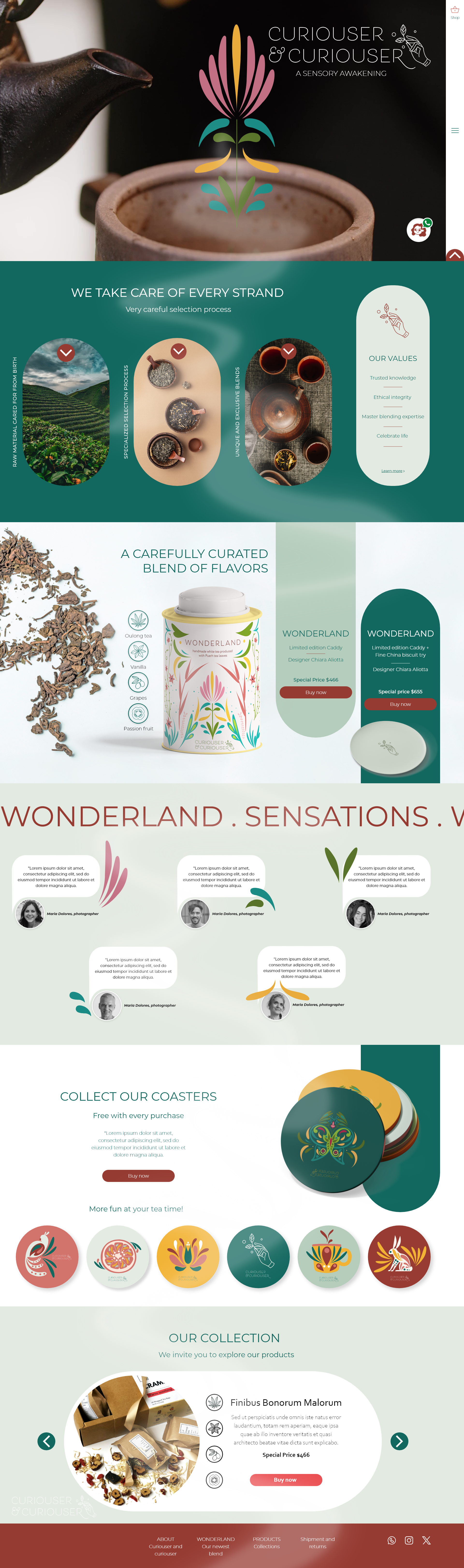 “Curiouser and Curiouser” is a brand who offers a unique product handcrafted by specialists seeking to generate different sensations through its aroma and flavor. “Curiouser and Curiouser” wants to accompany you in your daily life, transporting you to a moment of delight.