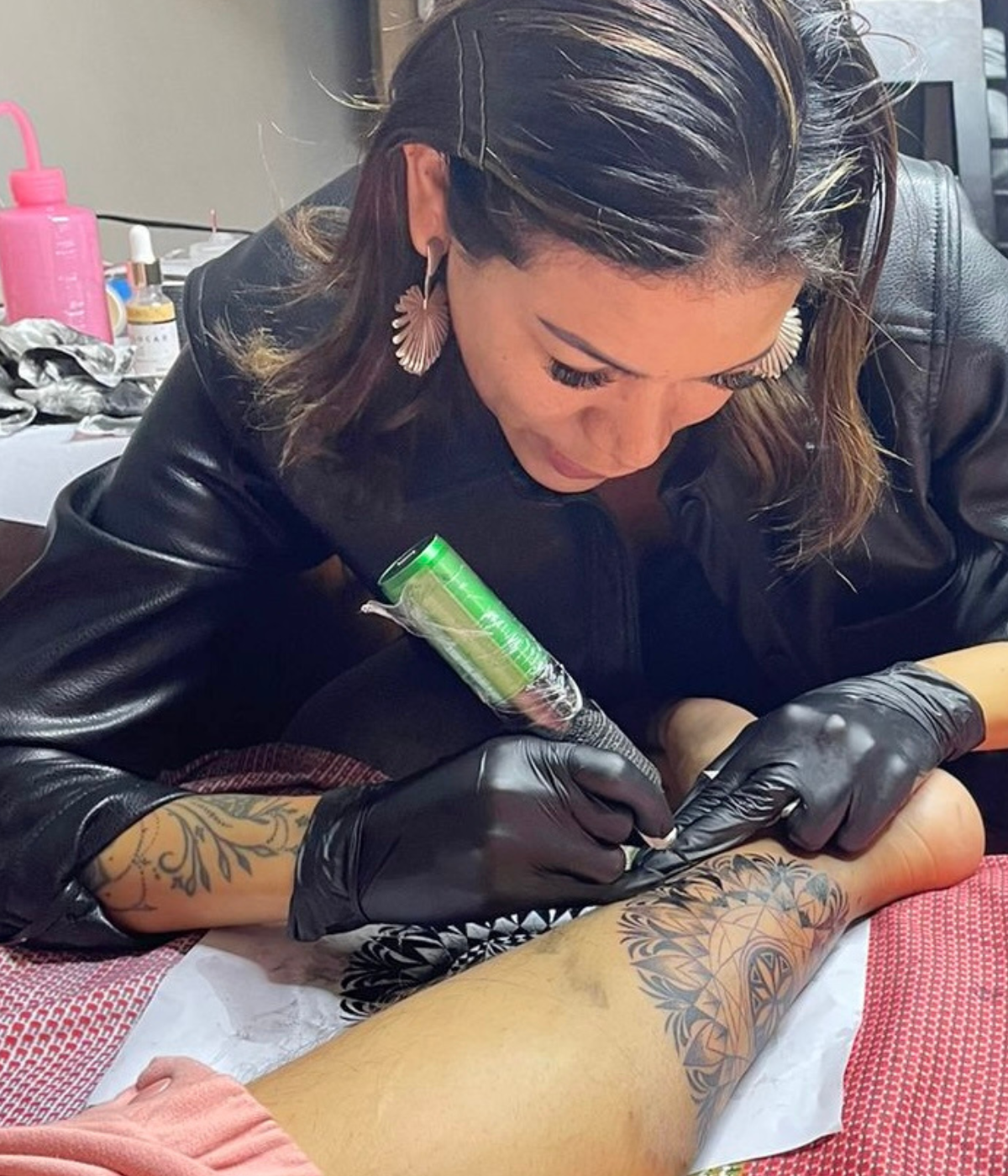 Descargué una imagen de mándala de interné y la personalicé al momento de plasmar. Use agujas 1005RL, 1209M