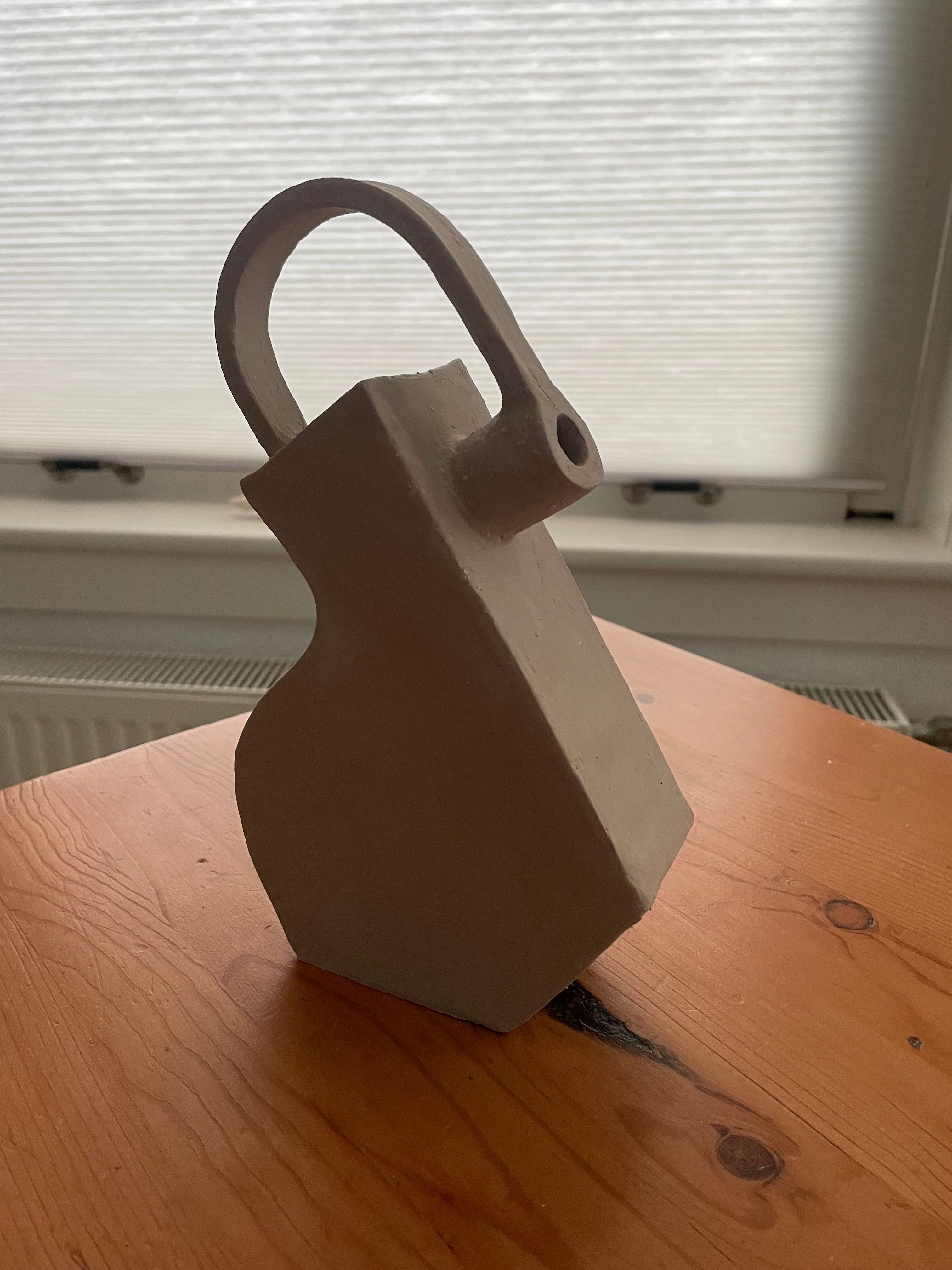 My first attempt was still to wet, therefore the sides of the vase are bended instead of straight. Hence I tried another one, and I feel kind of happy with this one. I made it of clay that is okay for raku, since I have a workshop in a couple of weeks. It was a bit rough to handle, and I am not sure if the design is strong enough for raku, yet I probably gonna give it a try, or maybe I make another one so it can go wrong. I really enjoyed it.