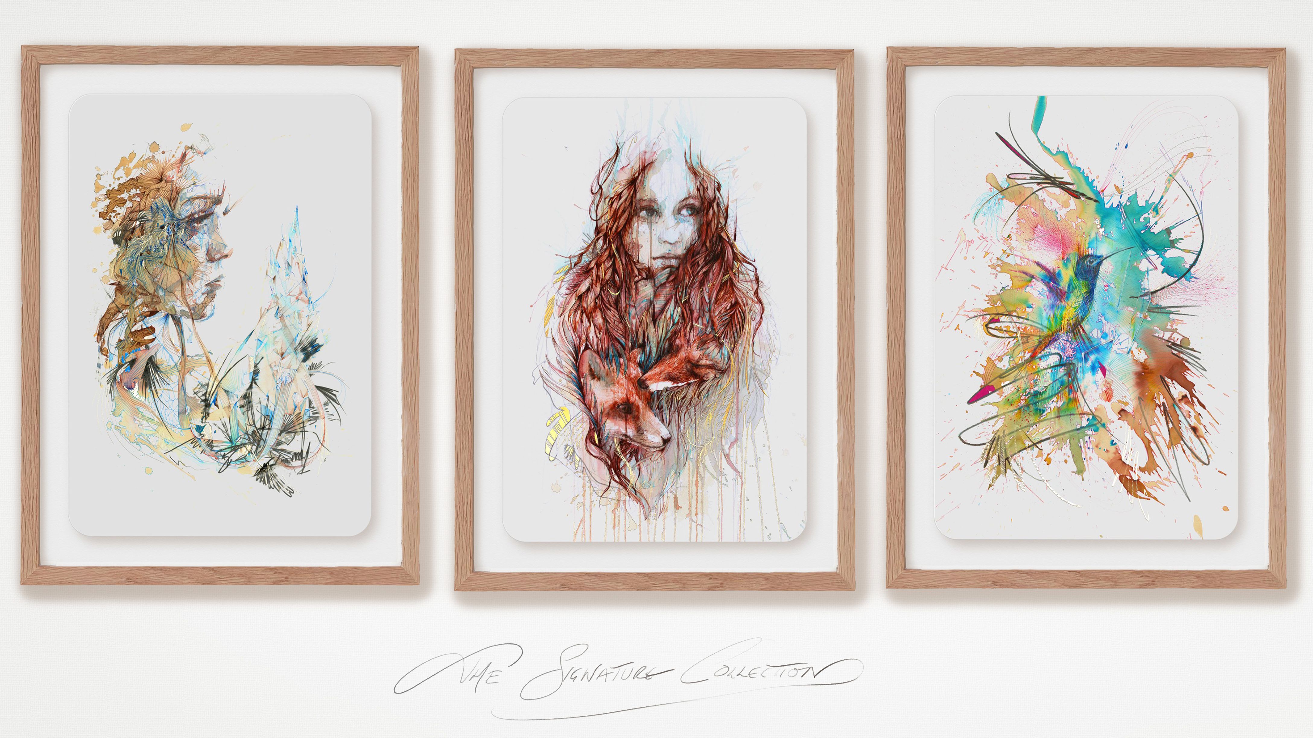 I have created a set of 10 prints using paintings from exhibitions over the years, the prints use already produced artwork but each adds a hand finished layer which is reproduced using gold foil. I have scanned, used photoshop and created visuals of the pieces using blender you can see the video here http://kck.st/3Wtjlg8