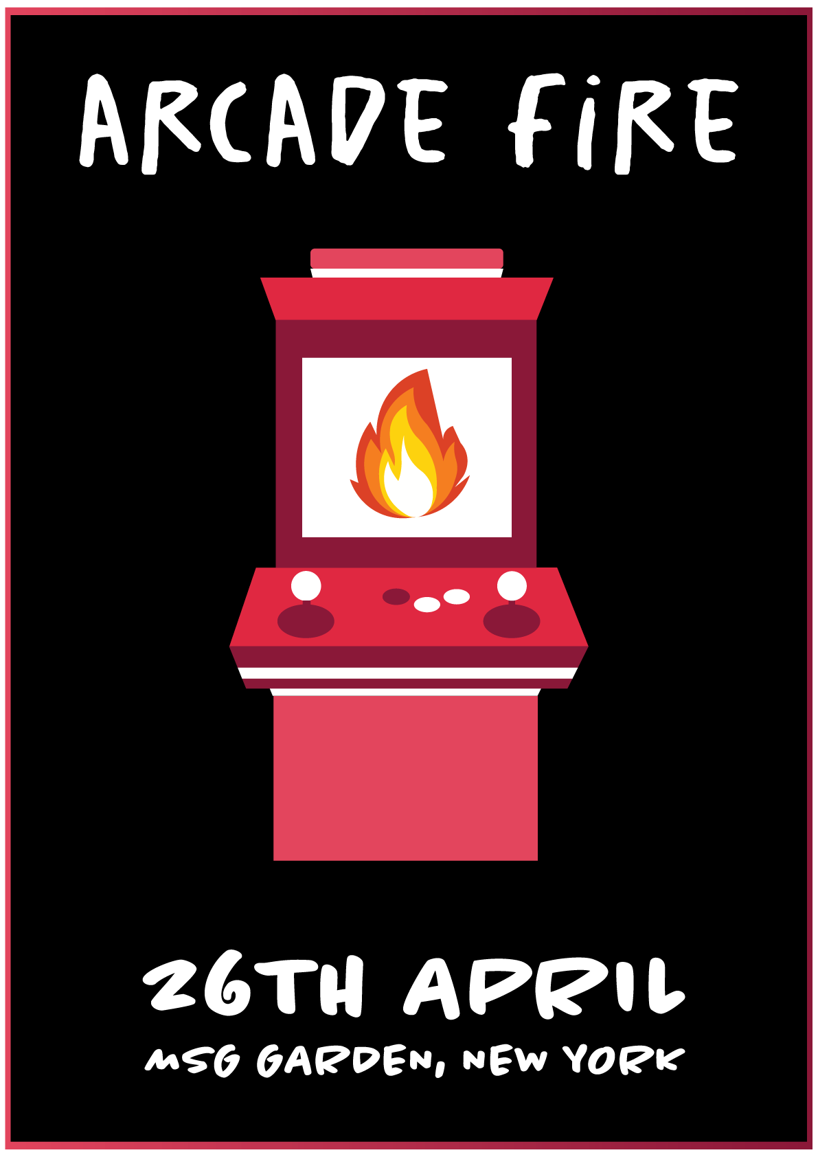 I did quite a few sketches. In the end I did not entirely use them and I created something that is a sort of extension of original sketches. Poster is as minimalistic as possible. For final version of poster I used Adobe Illustrator. My initial hand lettering was not very good so I decided to use fonts "Chantal" and "Salted". Main focal point of poster is Arcade machine with fire displayed of screen of this machine. Using an arcade machine as the focal point directly plays on the band's name, while the fire on the display adds an element of energy and intensity - qualities that Arcade Fire’s music often embodies.