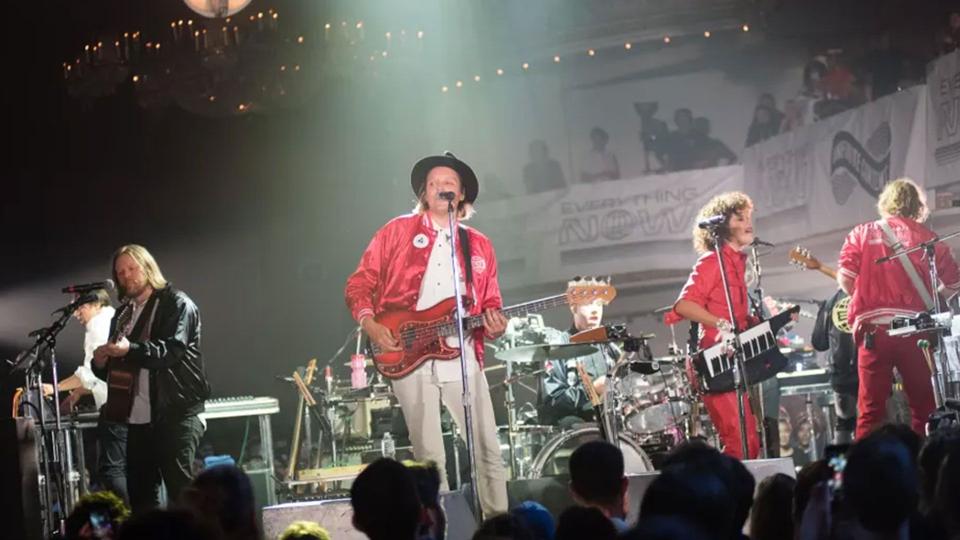 I decided to create a poster for my favourite band Arcade Fire. Arcade Fire is a Canadian indie rock band formed in 2001 in Montreal. The band is known for its grand, orchestral sound, deeply emotional lyrics, and energetic live performances. Their music blends elements of indie rock, baroque pop, and art rock, often featuring a wide range of instruments, including violins, accordions, and synthesizers. That is why I decided to create a poster featuring a concert of this band. (Source of the photo is magazine Variety. Photo was taken by Ryan Muir.)