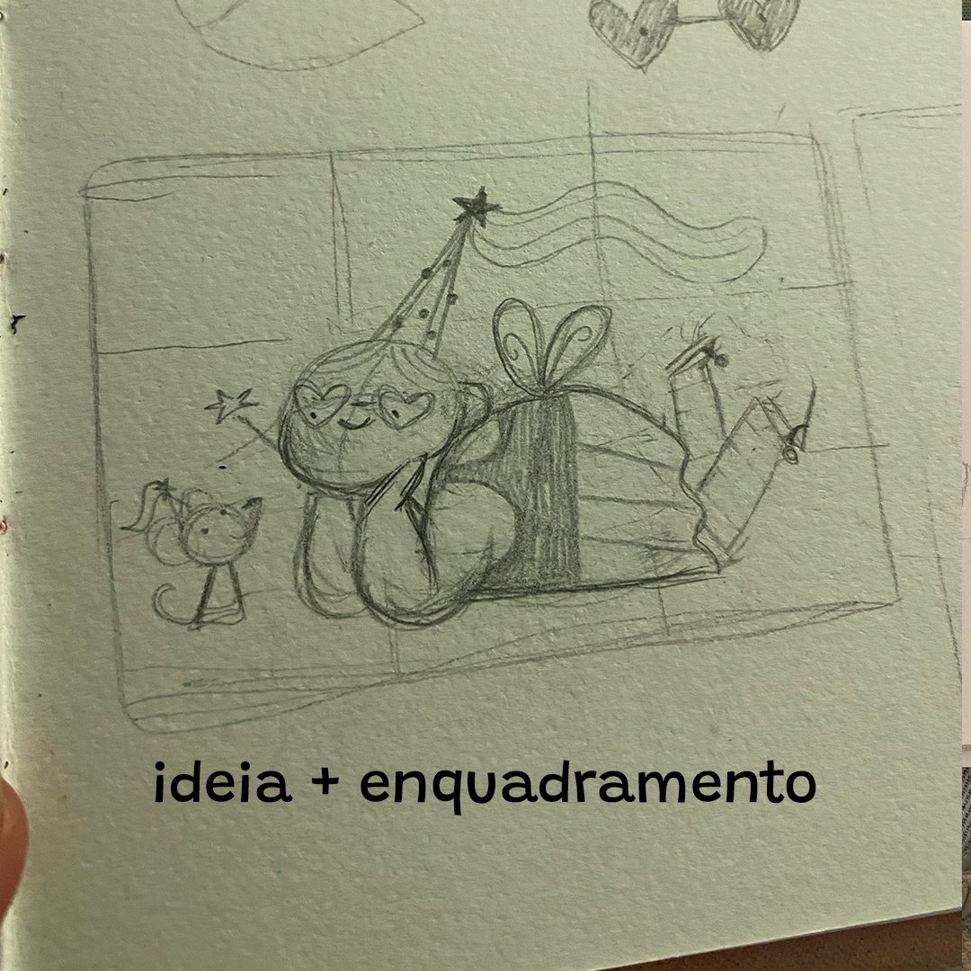 Usei lapiseira e borracha para esboçar a ideia em uma folha do meu sketchbook