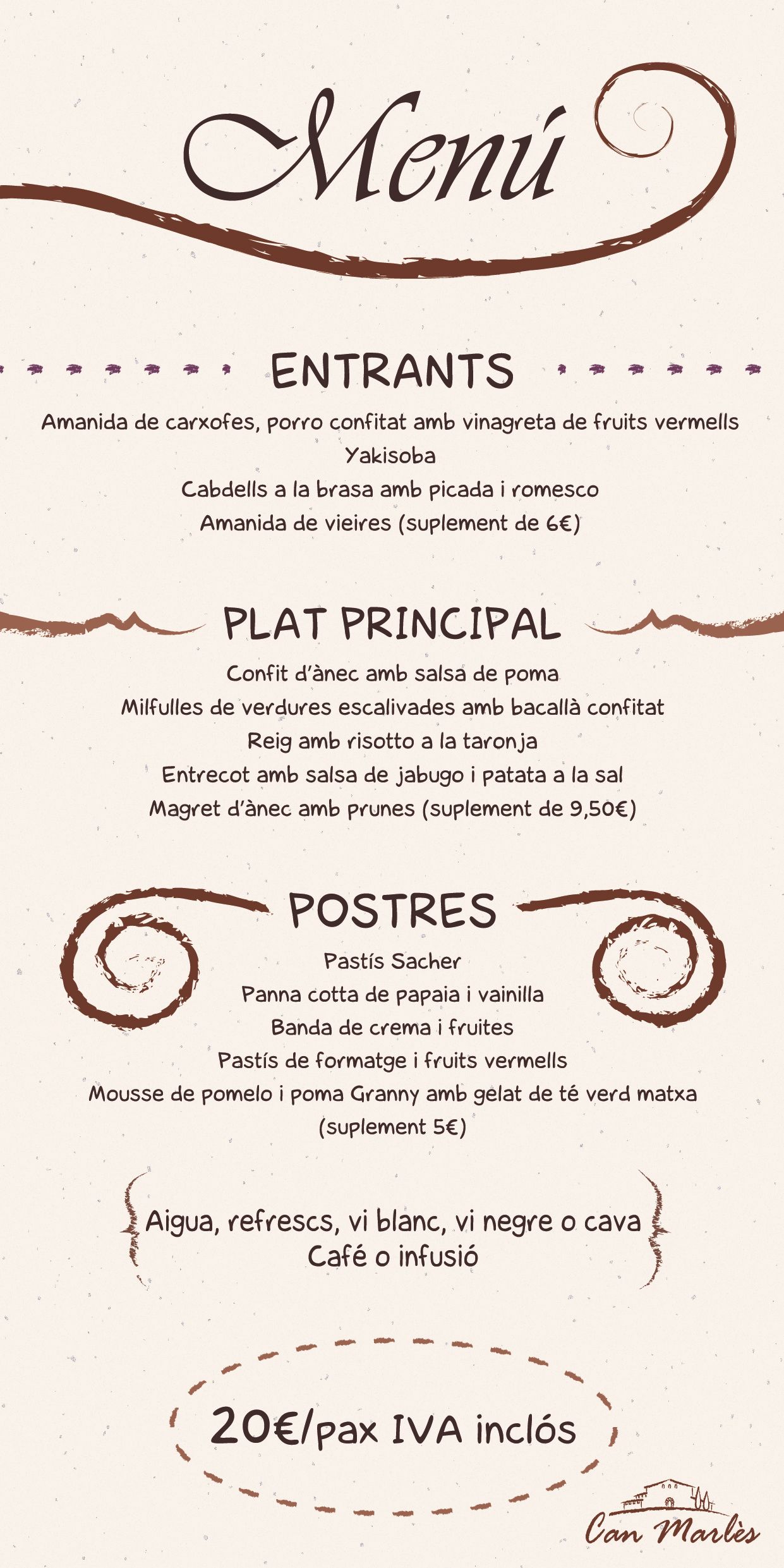 Flyer línea modernitzada amb el dors amb tota la informació de contacte i preus menús d'entre setmana i del cap de setmana.