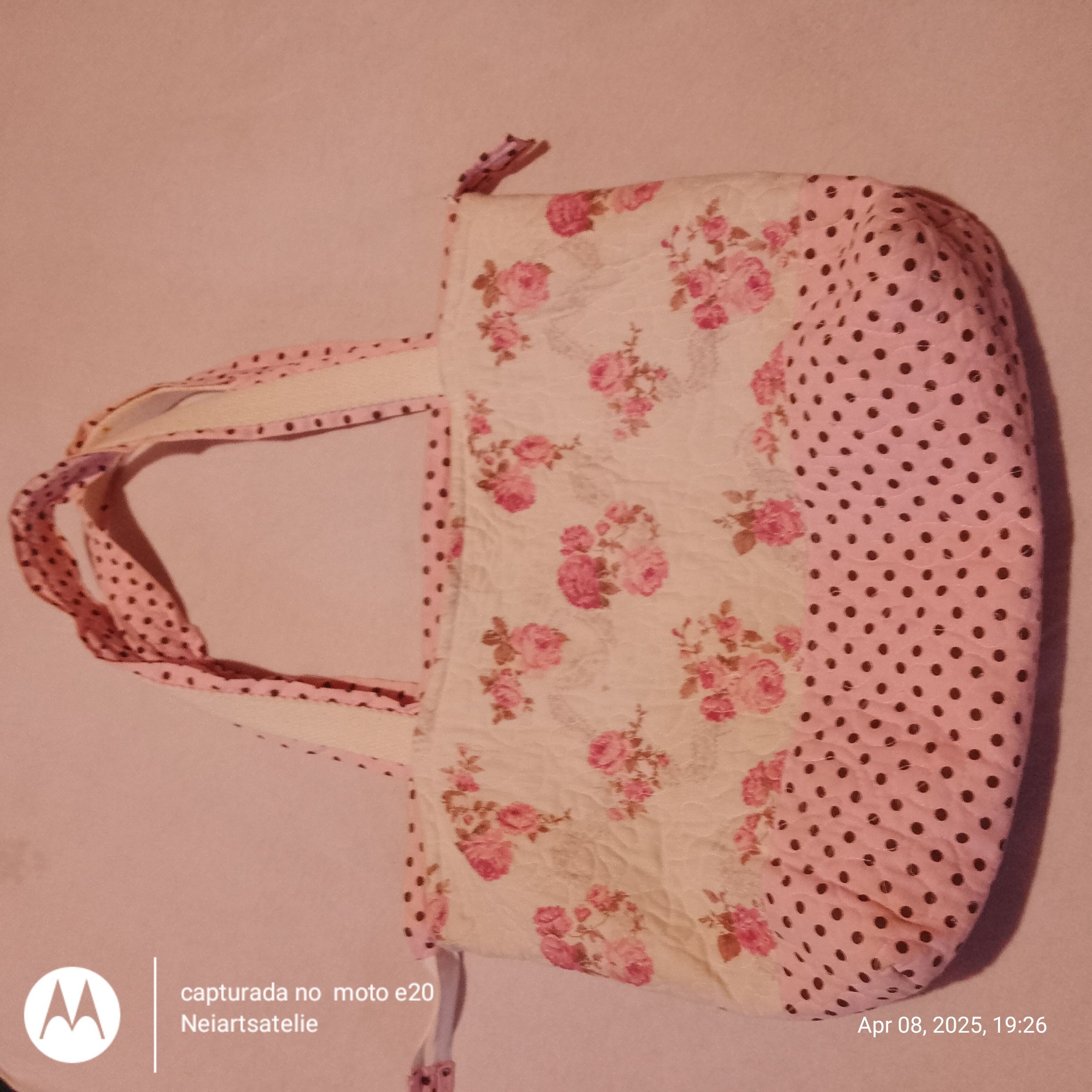 Toalha de chá,usei tecidos, agulhas, linhas e zíper pra bolsa.