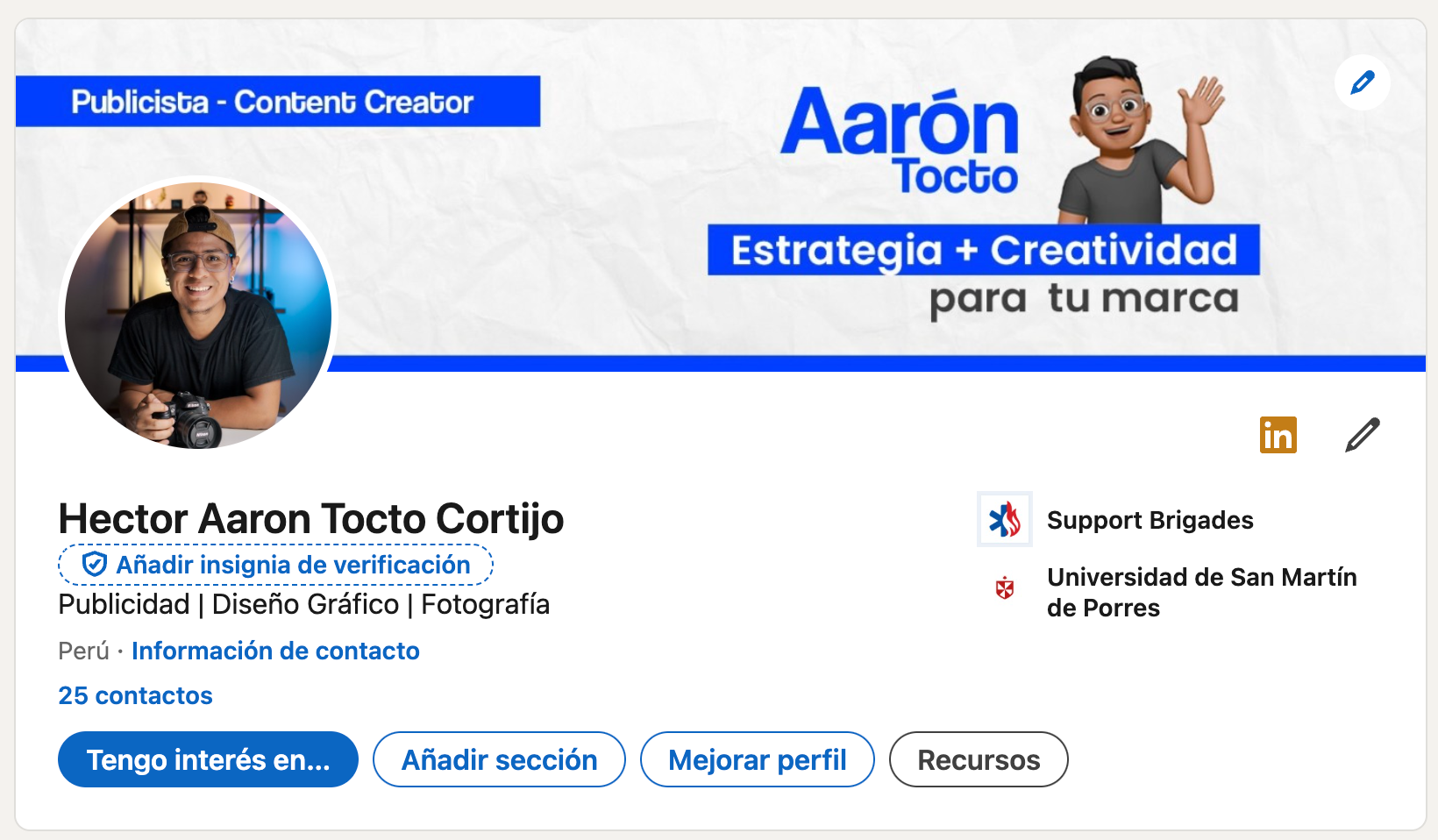 He decidido promocionarme como Publicista y Content Creator a través de mi perfil de LinkedIn, no utilizaba esta red social asi que me parece una increíble idea el aplicar los conocimientos del curso para mejorar mi marca personal.