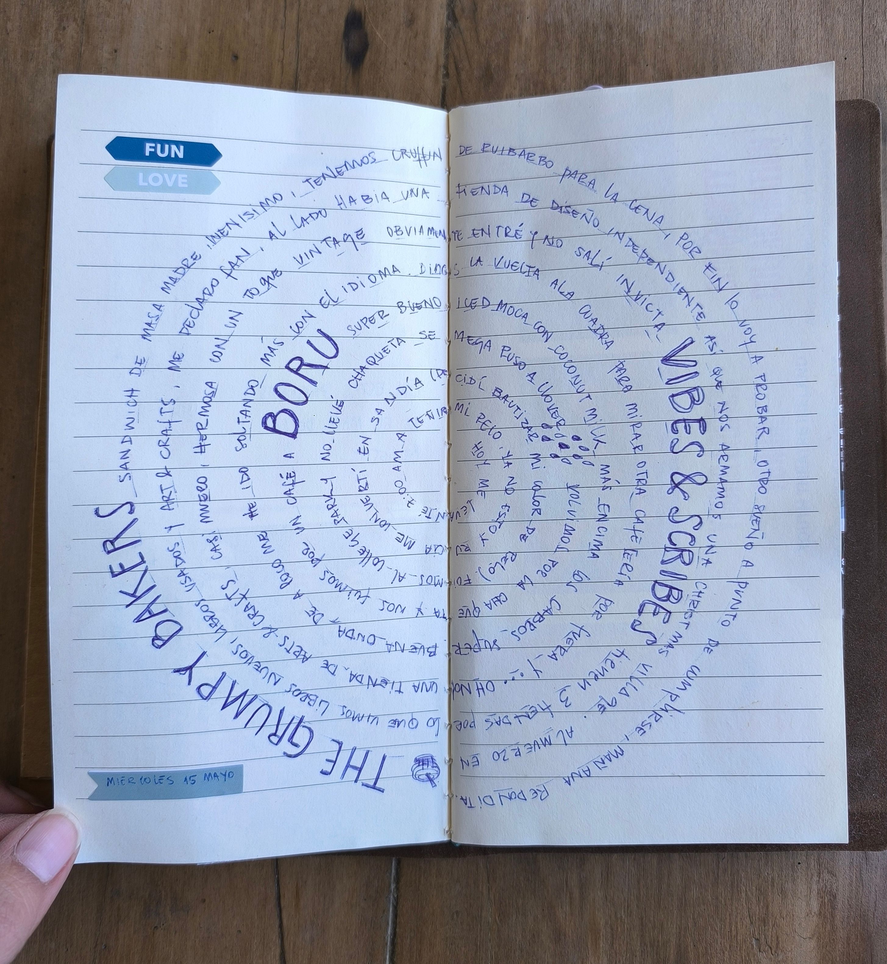 El cuaderno lo encontré en un viaje a Madrid, aunque no viajo tanto, trato de encontrar en el lugar que estoy visitando el cuaderno para el siguiente viaje.