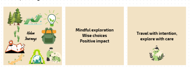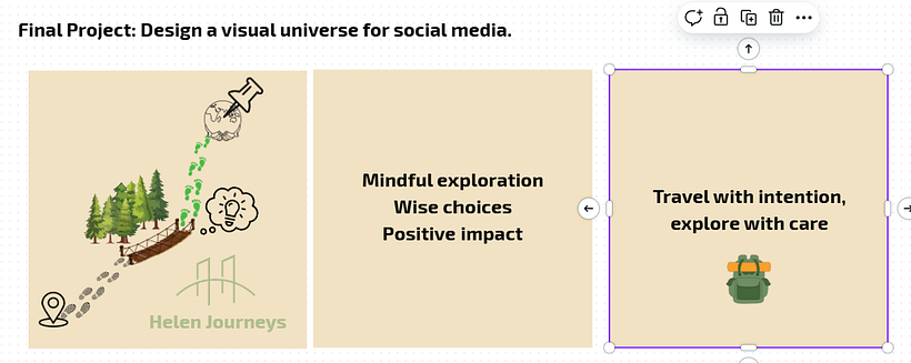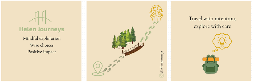 These is my personal brand I’ve been working on lately. My goal is to empower travellers to make choices that protect our planet while embracing meaningful experiences. For the creation of these visual post identities, I have mainly used icons inspired on stock photos I’ve searched for. It is a minimalist way to represent my goal to travellers and people who advocate for eco-friendly practices.