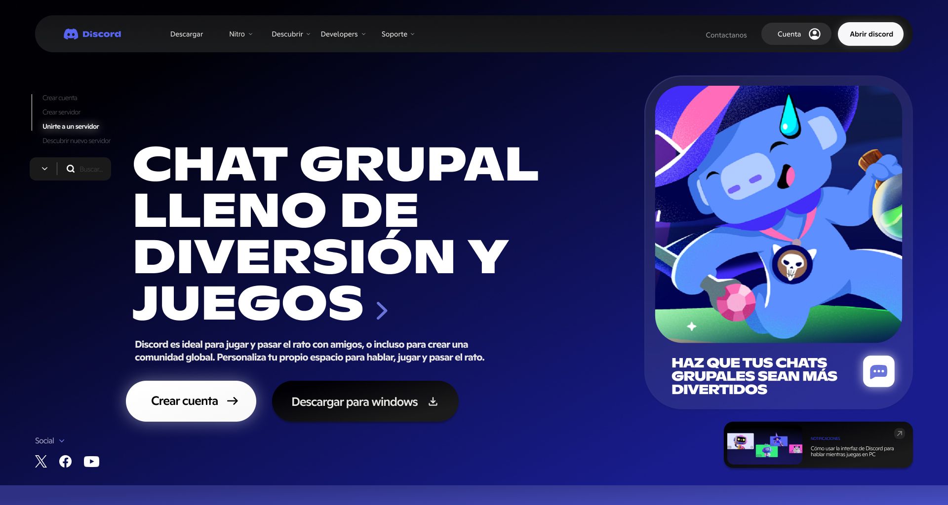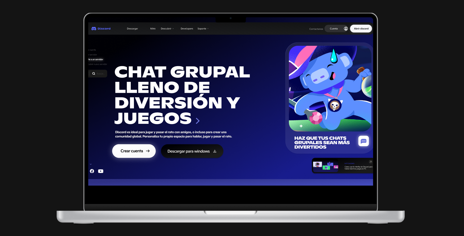 Se uso de inspiracion la pagina original de Discord, pero se renovo el diseño de la landing page en Español.
