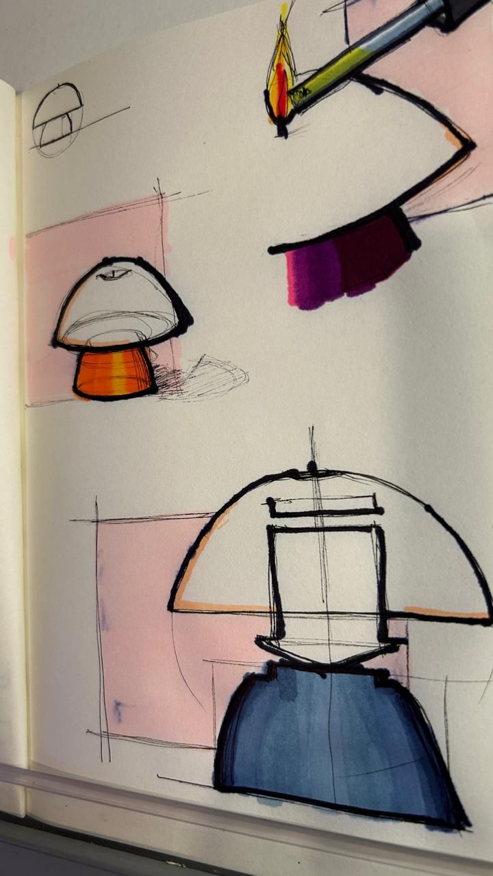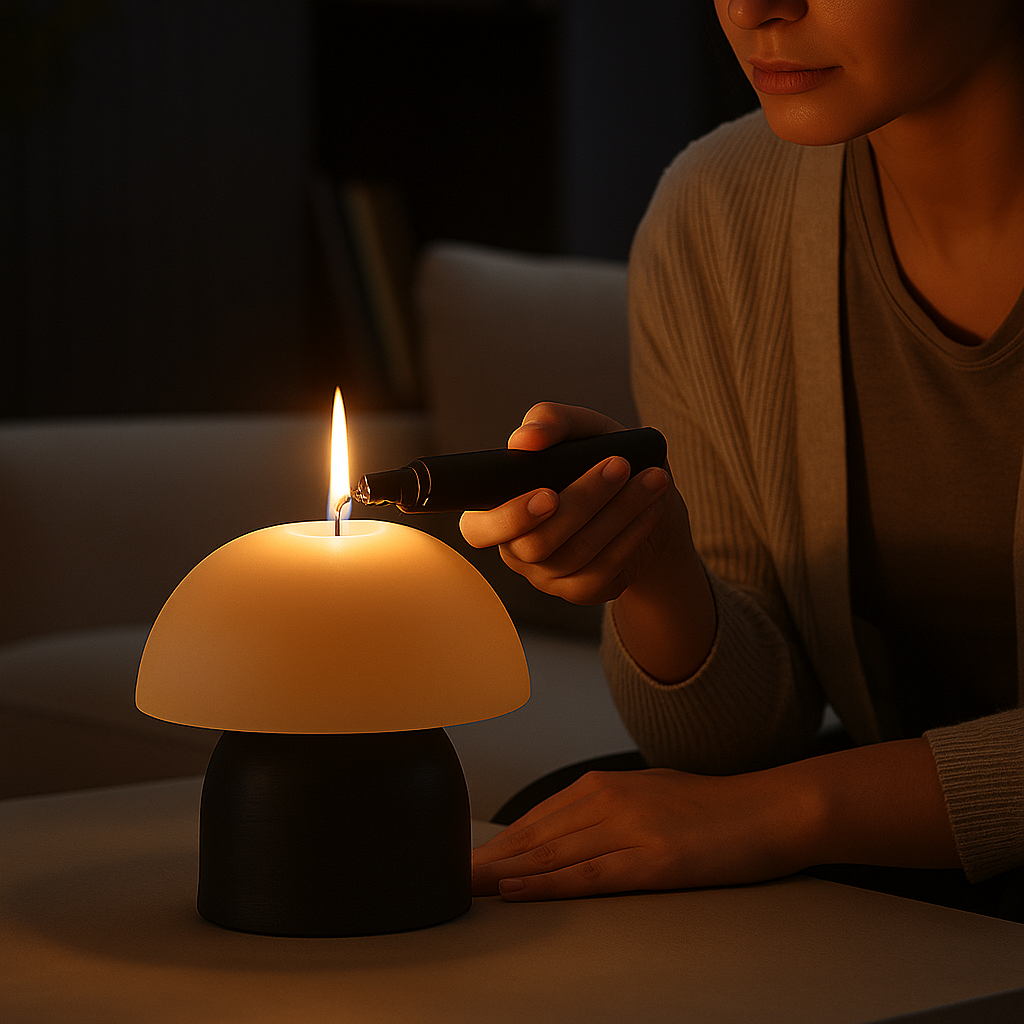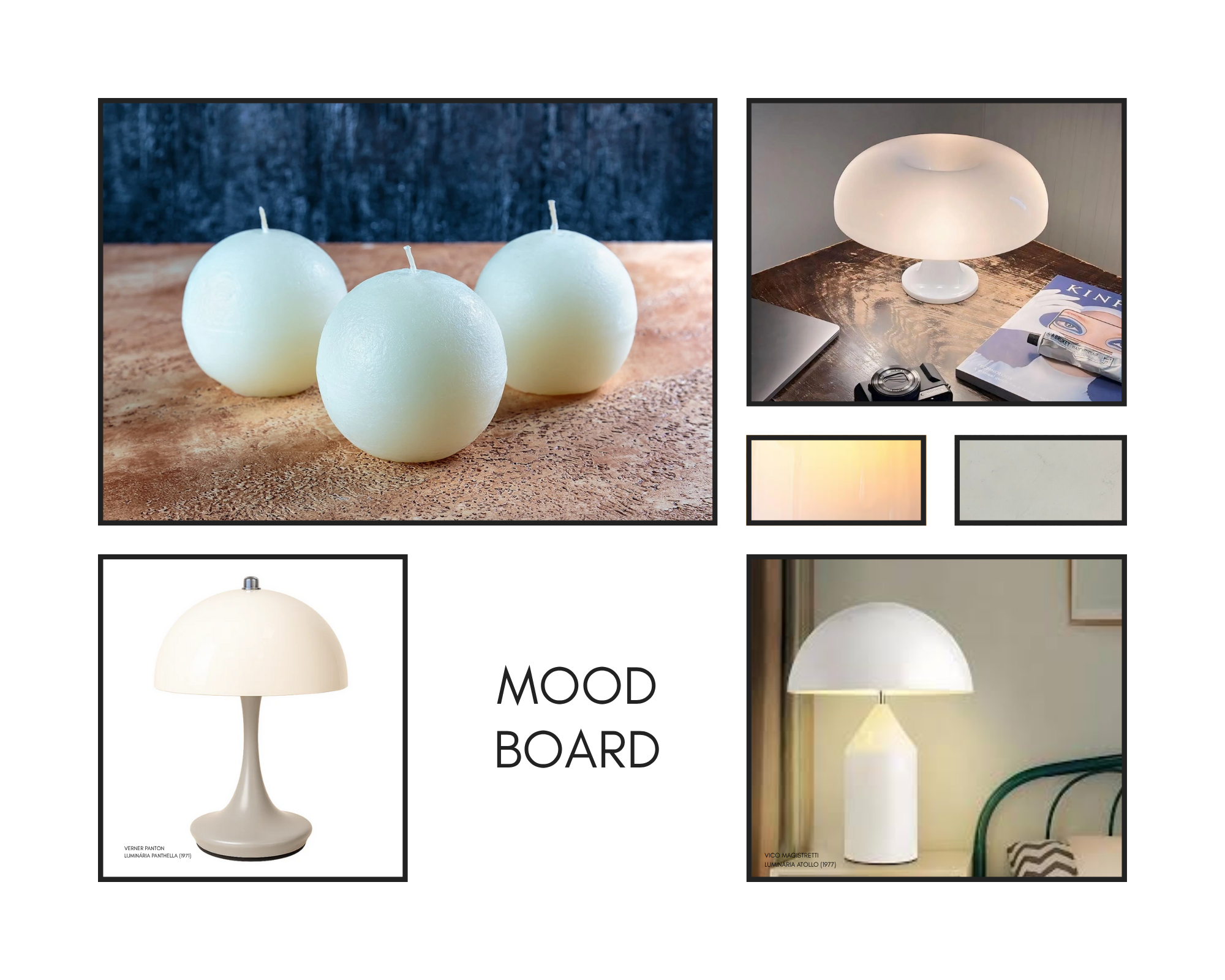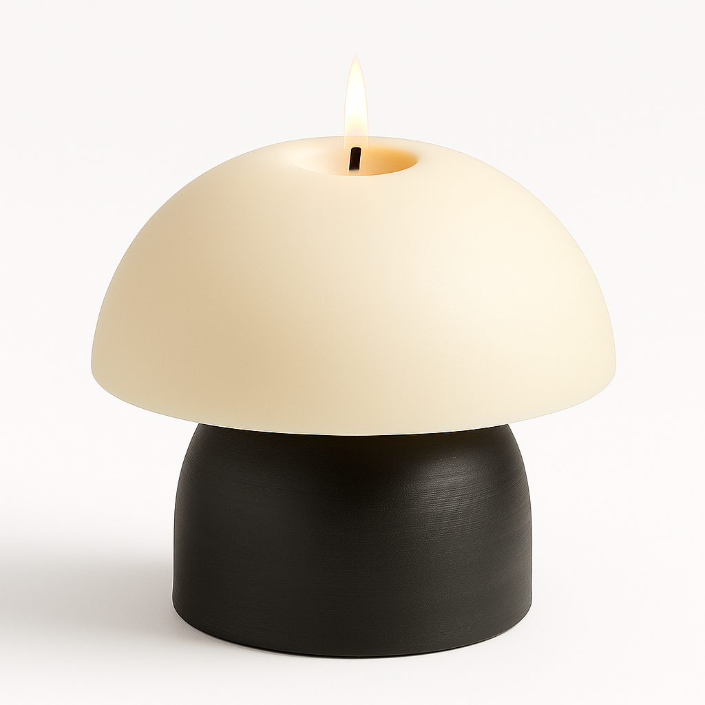 A sculptural piece inspired by the history of lamp design, revisiting iconic elements of the 1970s modernist language, especially in its references to the Panthella lamp by Verner Panton and the Atollo by Vico Magistretti, to propose a poetic inversion: what is normally a source of electric light becomes, here, a candle. A flame in place of a bulb, returning light to its most ancestral origin.