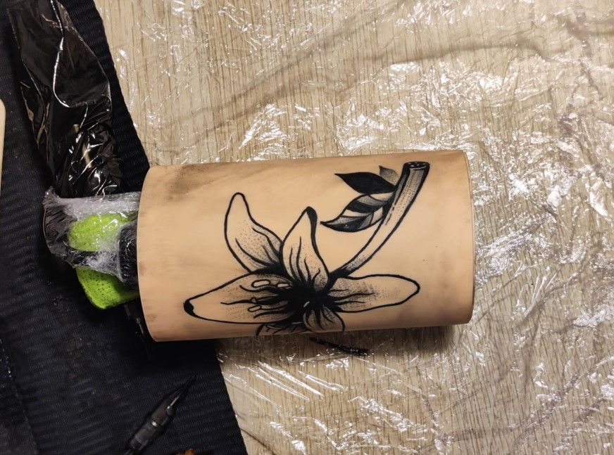 La idea es hacer un lirio de estilo blackwork. Las sombras oscuras y muy marcadas mezclando puntillismo de arrastre con negros sólidos. El diseño está pensado para un tamaño aproximado de 12x12cm. A continuación adjunto el boceto inicial hecho por mí en Krita.