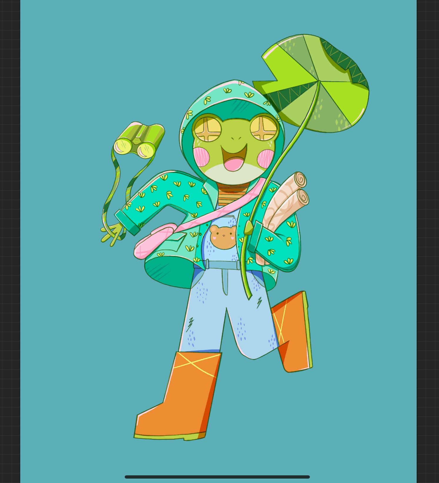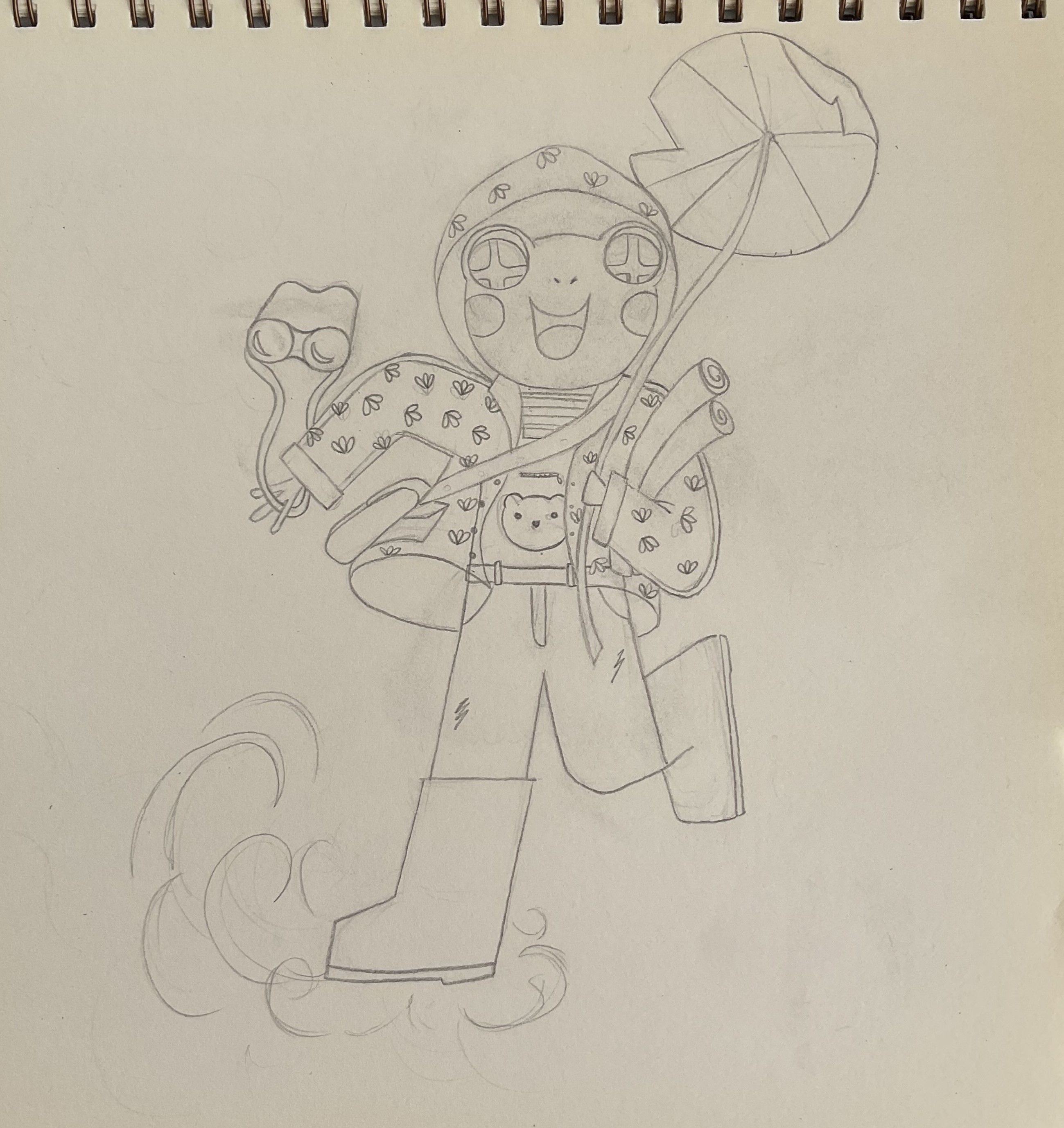 Inicie con la lluvia de ideas y referencias respecto al tema y la historia que quería contar con mi personaje, de allí surgió inmediatamente la idea de la rana y, a pesar de que desarrollé otras opciones, desde que describí esa primera idea ya tenía muy claro cómo quería realizarla y qué historia tendría detrás, así que me decanté por ella.