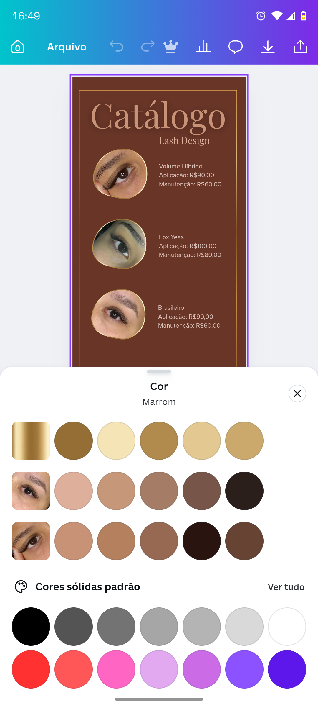 Criei uma catálogo de cílios para uma amiga. Fiz isso com o intuito de treinar tudo que aprendi no curso. Achei o resultado satisfatório.