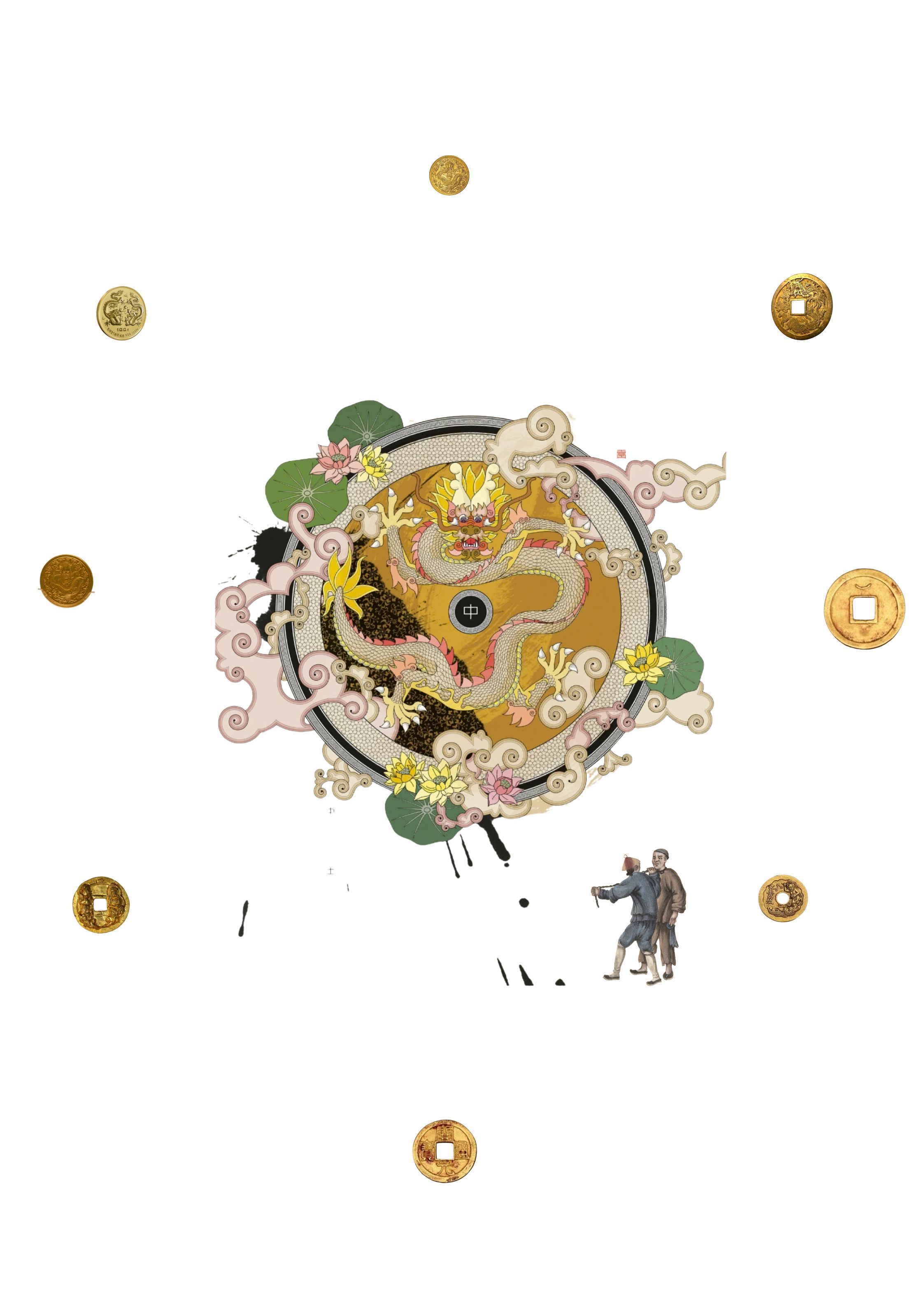 Zenginliği simgelemek için Çin teması ve sarı/altın renk teması kullanarak bir resim yapmak istedim. Batıda ejderhalar ateş püskürtür ve yıkıcı varlıklar olarak kabul edilirken, Çin'de sarı ejderha hariç tüm ejderhalar iyiliksever varlıklar olarak kabul edilir.