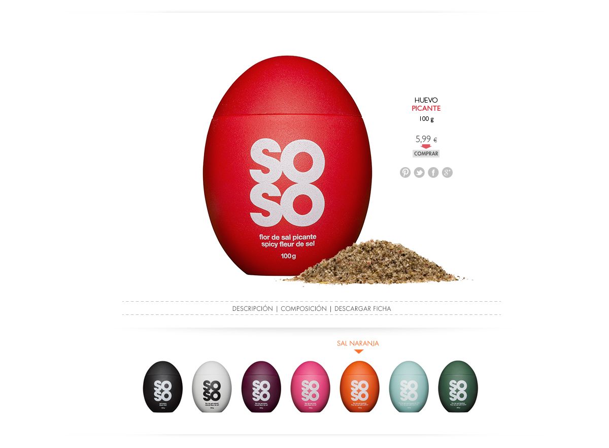 El diseño de la tienda on line de SOSO partía de un producto que brillaba por sí solo con una fuerte personalidad. Nuestra misión era dejarlo respirar y hacerlo fácilmente accesible al cliente. El secreto de una tienda online es que sea intuitiva, eficiente. Cuantos menos clics mejor.