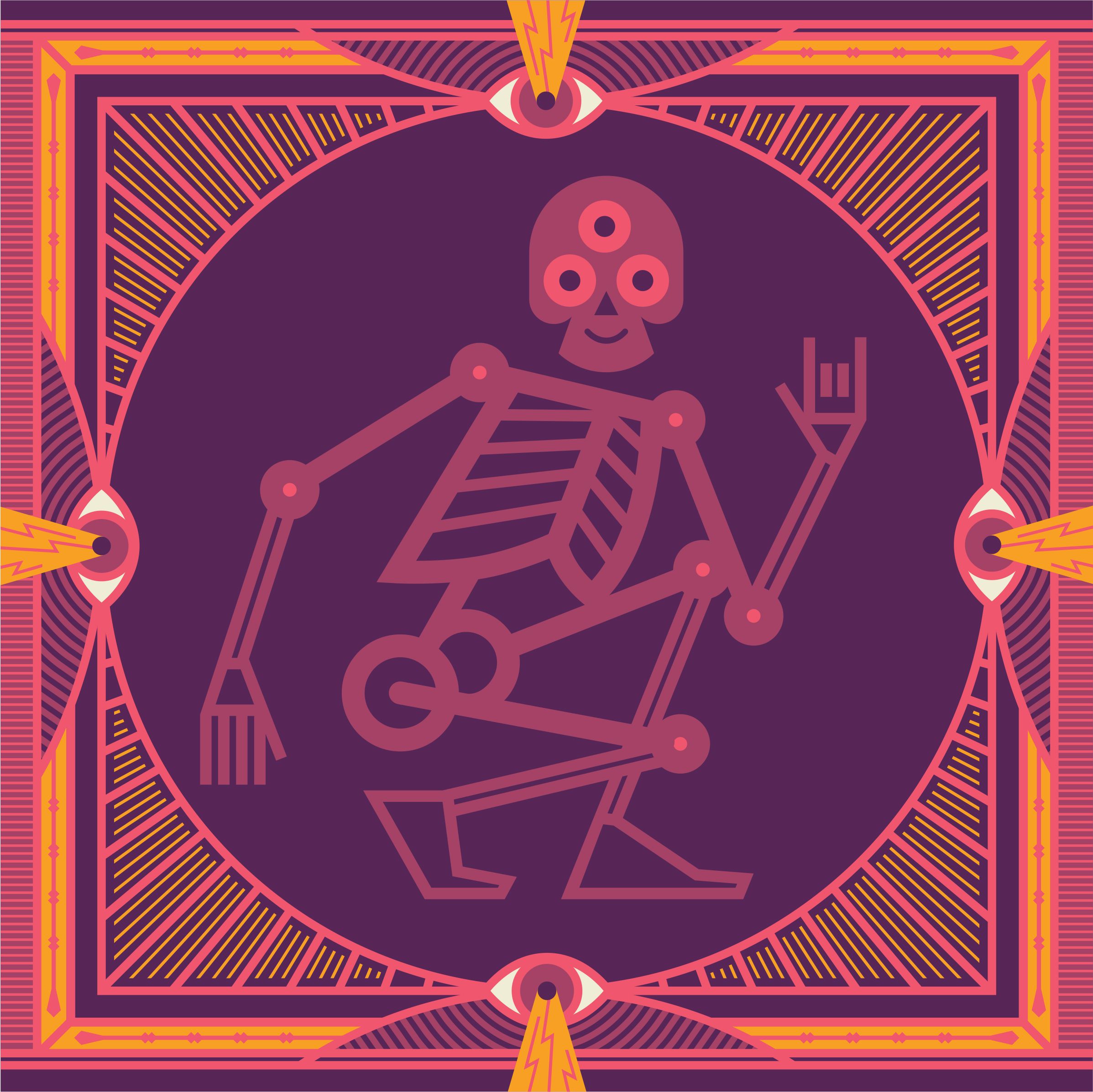 Un último cartel, en formato cuadrado y con un esqueleto al centro fue realizado para la exposición colectiva MUERTE LENTA con el tema del festejo de Día de Muertos.