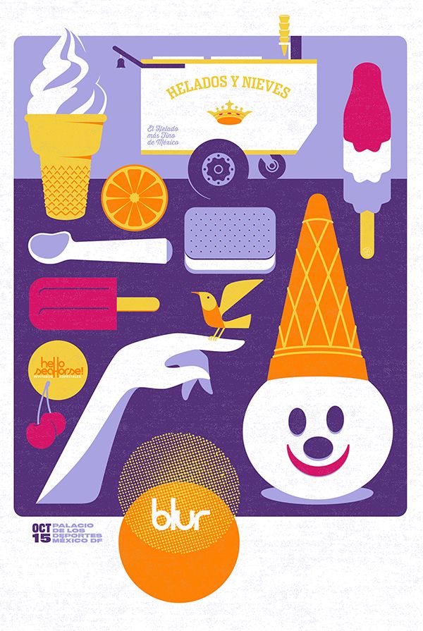 Çeşitli ulusal ve uluslararası grupların Meksika'da gerçekleştirdiği performanslar için çeşitli gruplar ve Mercadorama tarafından sipariş edilen posterler.