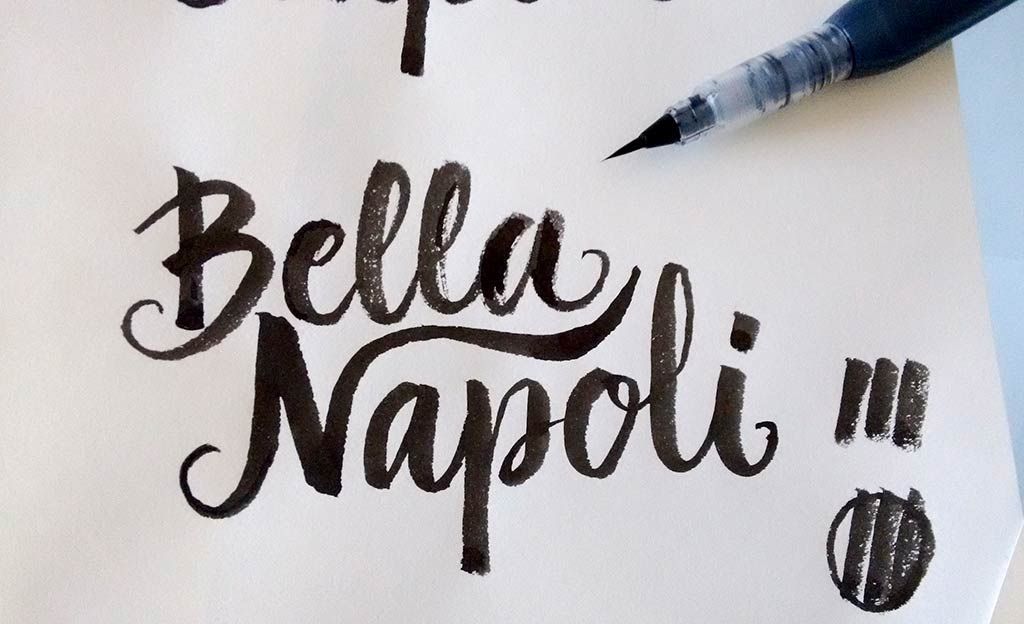 Lámina con caligrafía itálica con brush pen y acuarela.