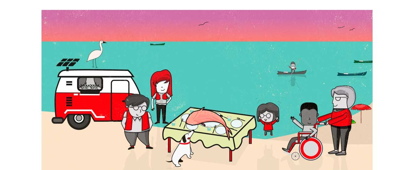 Buscamos un estilo retro para el estilo de ilustración utilizado en la campaña. Trabajamos en tintas planas y texturas envejecidas. La imagen creada tiene que ir en consonancia de nuestro particular “Road Trip” hacia la sostenibilidad.