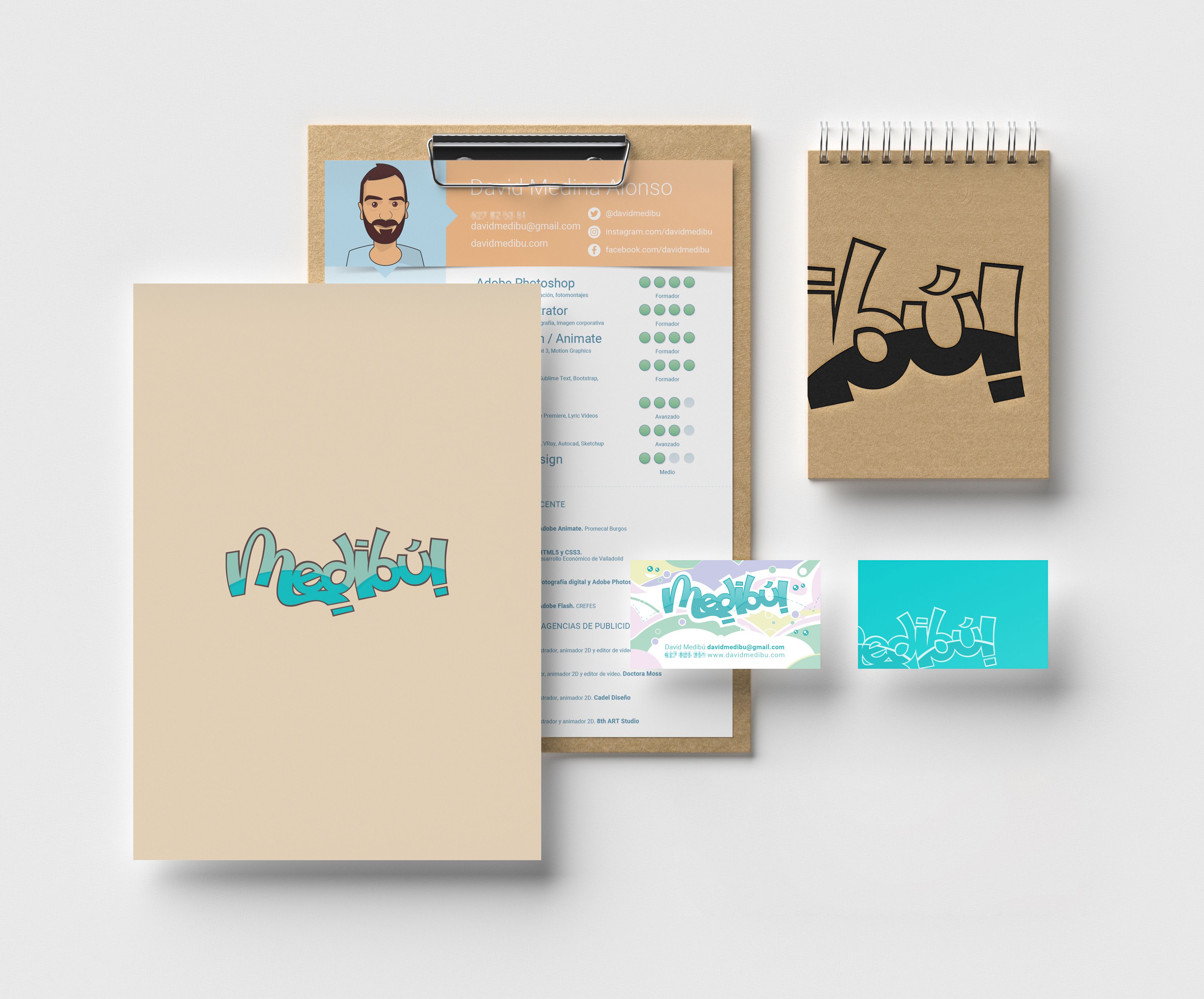Necesitaba una imagen sorprendente y original, que hablara de dibujo pero también de diseño e incluso de animación. Pero lo primero era encontrar un nombre, y para elegirlo recurrí a las redes sociales. Presenté a mis seguidores dos propuestas: Cocodrolo y Medibú. La segunda fue la más votada pero gráficamente no me terminaba de convencer así que decidí darle un par de vueltas, hasta llegar a lo que podéis ver aquí.