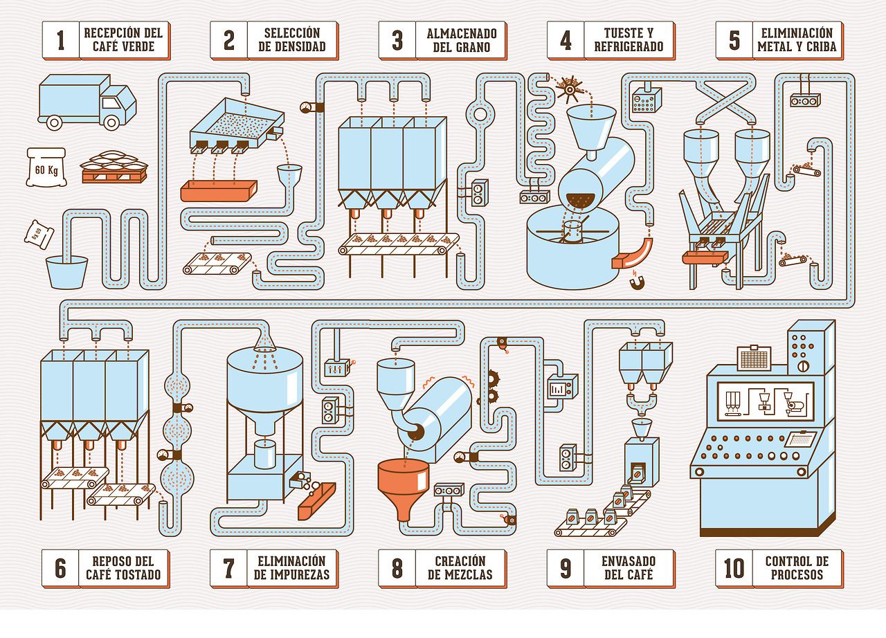 Serie de ilustraciones explicando el proceso del café para Café CIVIT.