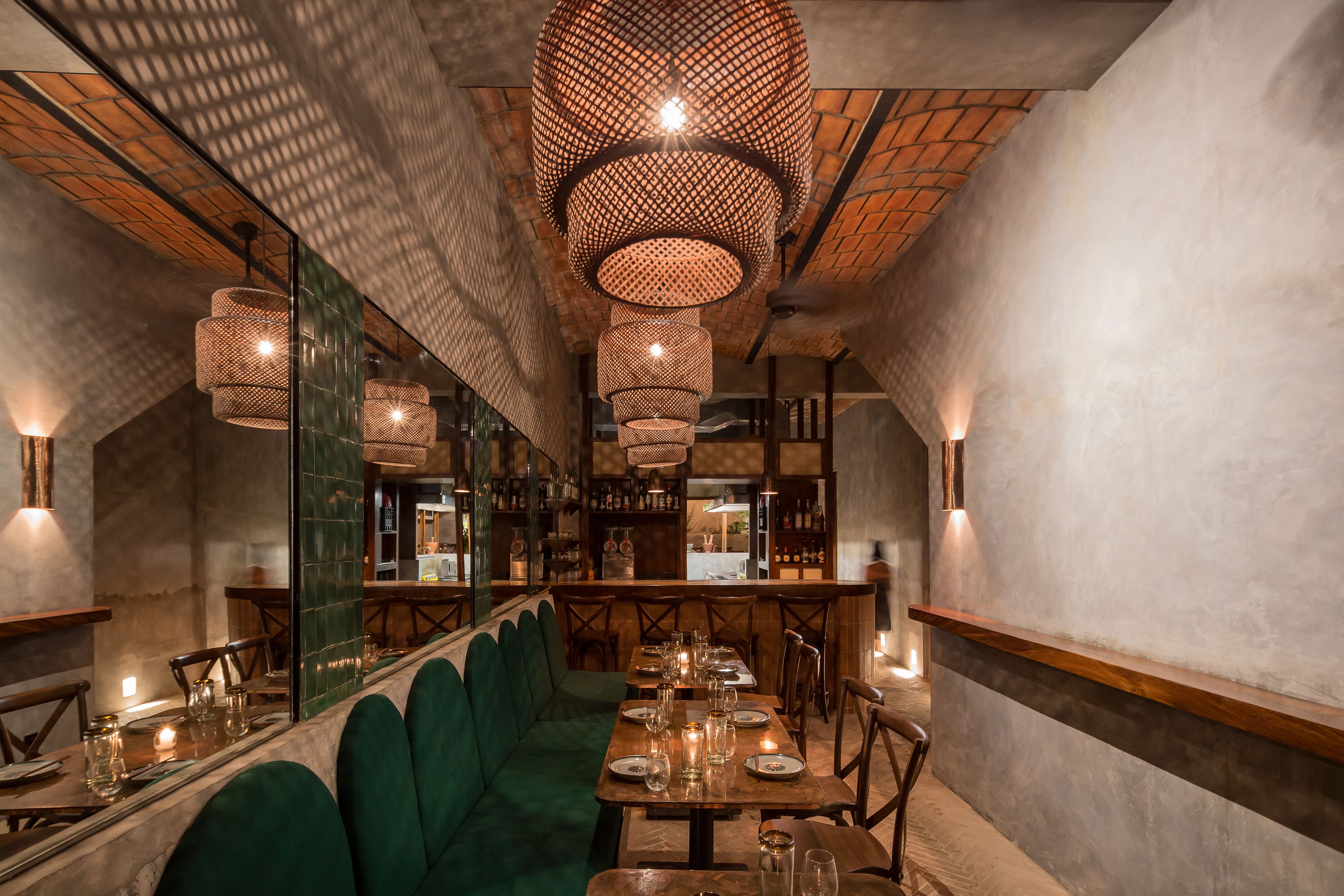 Proje, başta kil döşeme, parota ağacı ve bakır olmak üzere yöresel el yapımı malzemeler kullanarak ferah ve rahat bir atmosfer yaratmayı hedefliyor. Ahşap yapı, alçak duvarların üzerine metal ankrajlarla asılan çift sütunlardan oluşuyor. Loş ışıklandırma, istenen atmosfere katkıda bulunurken, mürekkep rengi bambu sarkıtlar, bakır sarkıtlar ve uçan payandalar da içeriyor.