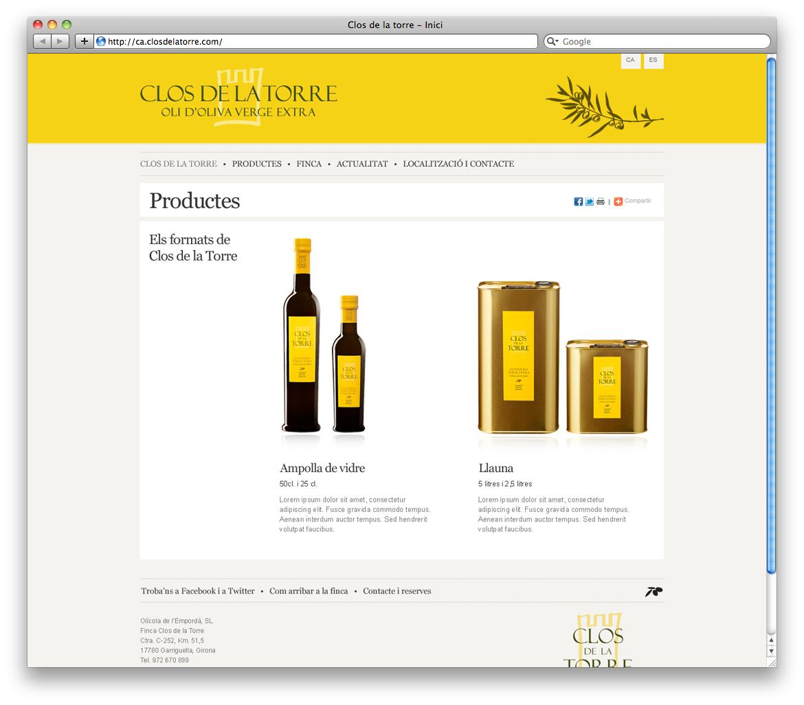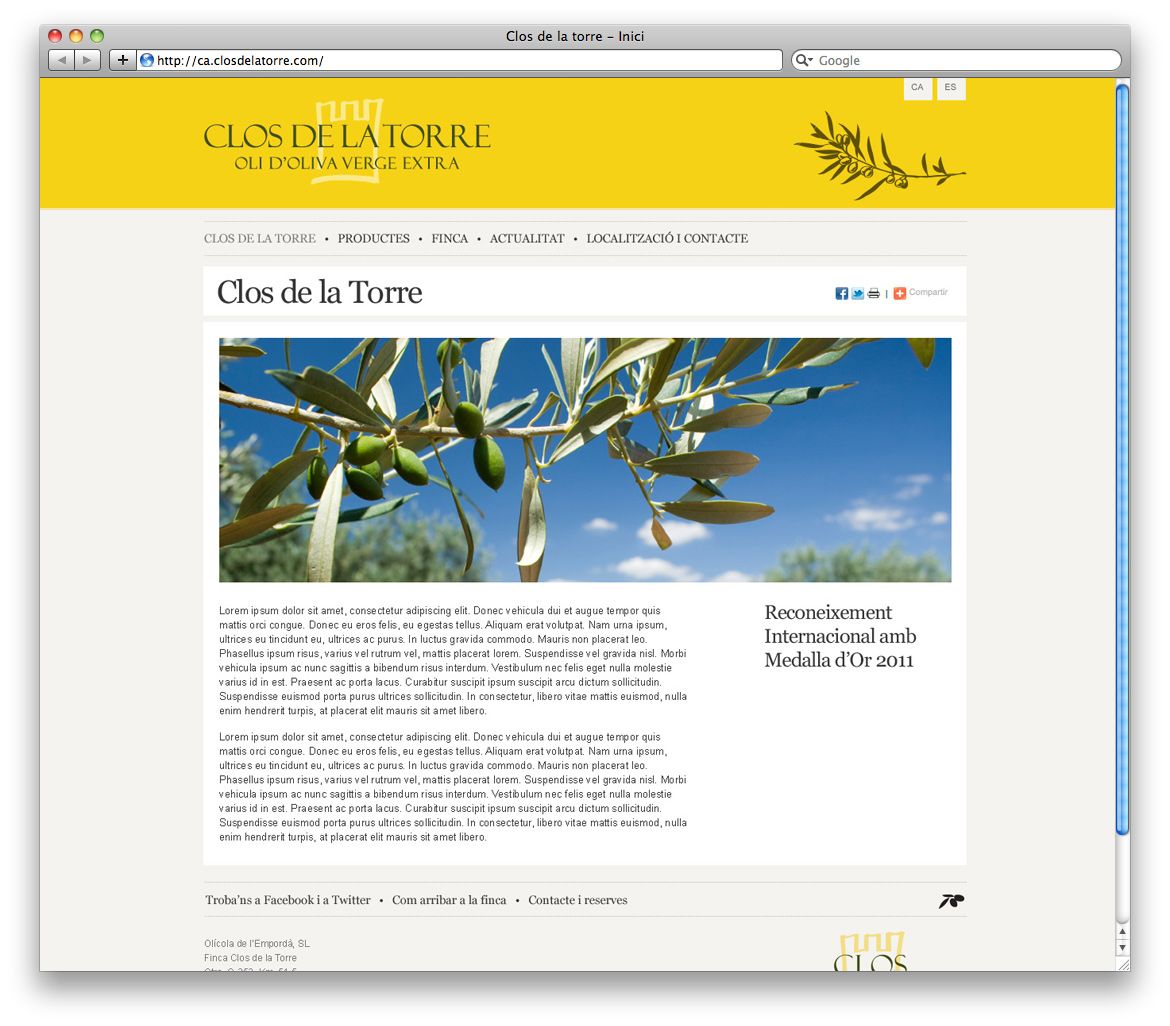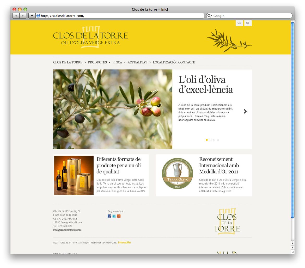 Creatividades web para la web Clos de la Torre, fabricantes de aceite de alta calidad. El contenido de la web es totalmente gestionable.