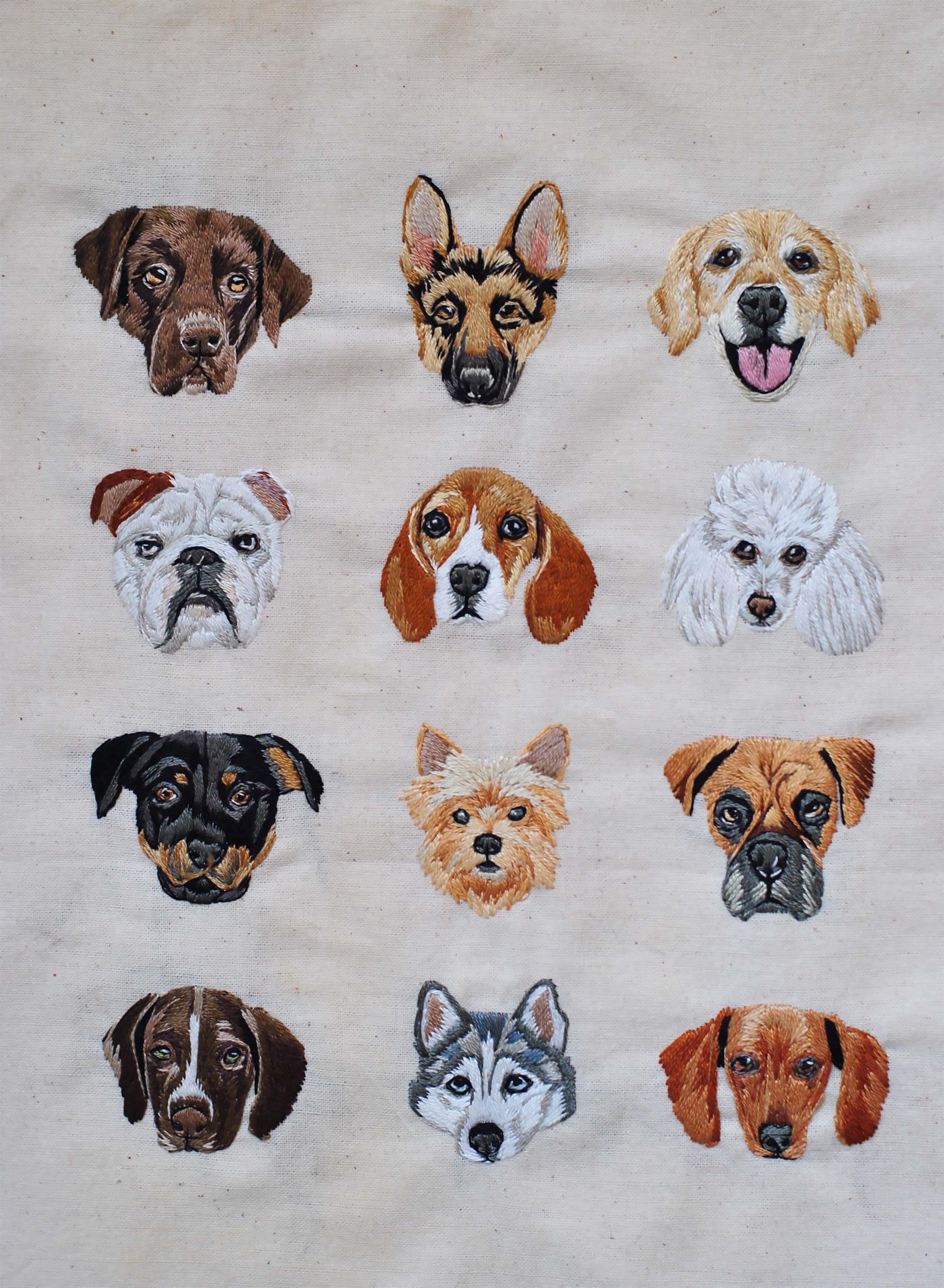 El libro contiene 380 muestras de perritos para bordar con sus plantillas de las cuales tuve la oportunidad de crear. En total son 8 paginas.